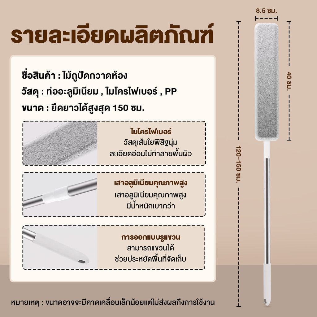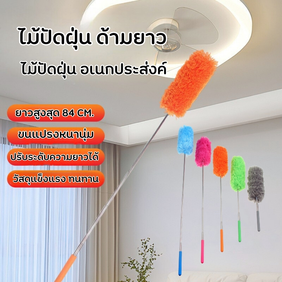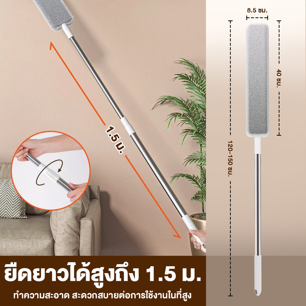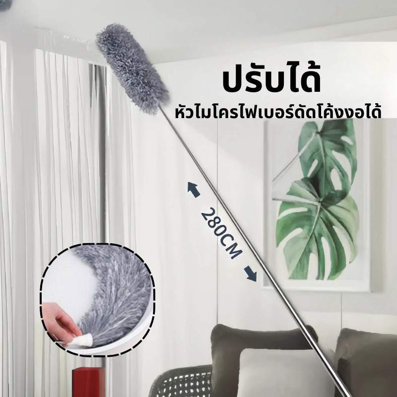 ที่ปัดฝุ่น ไม้ปัดฝุ่นยาว 2.8 เมตร ไมโครไฟเบอร์ ปรับได้ หัวไมโครไฟเบอร์ดัดโค้งงอได้