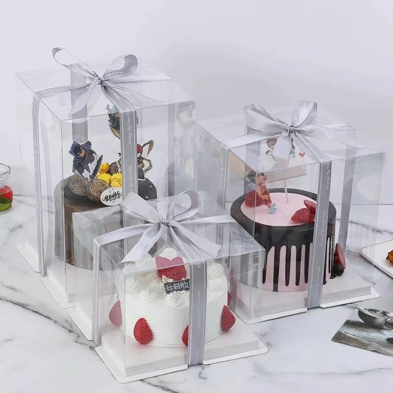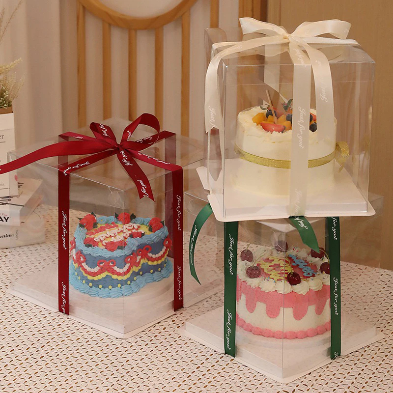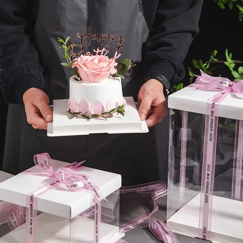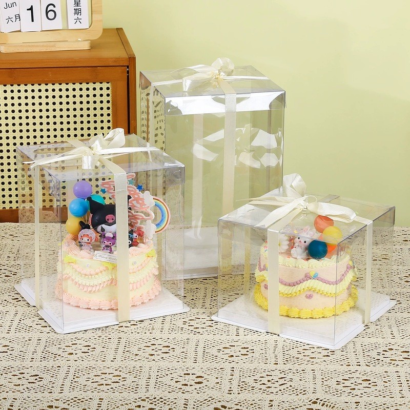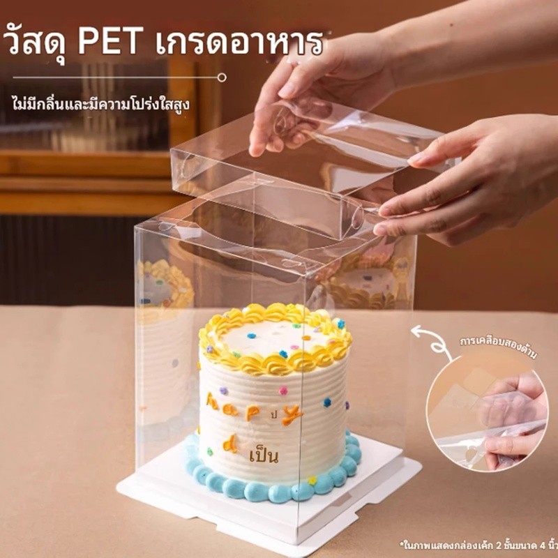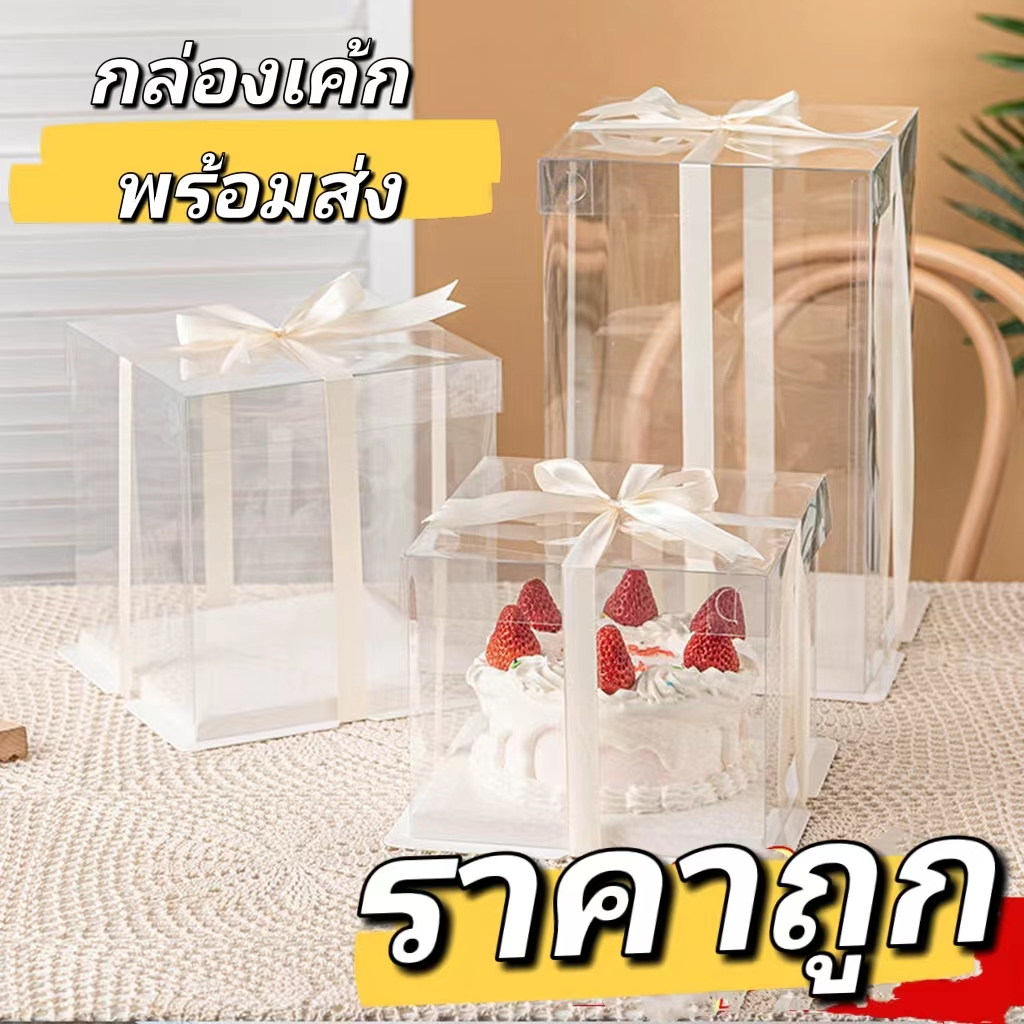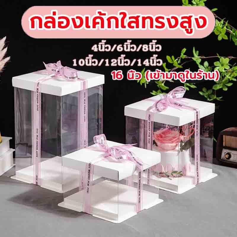 กล่องเค้กใสทรงสูง ฐานสีขาว กล่องเค้กบาร์บี้ กล่องเค้กคุ๊กตา ฝาใส ฐานสีขาว กล่องเค้ก 6นิ้ว/8นิ้ว/10นิ้ว กล่องเค้กใส