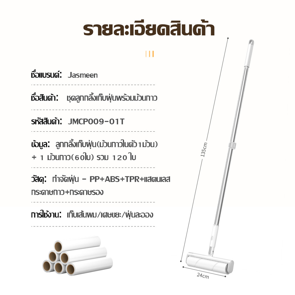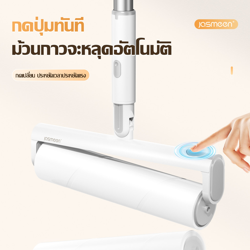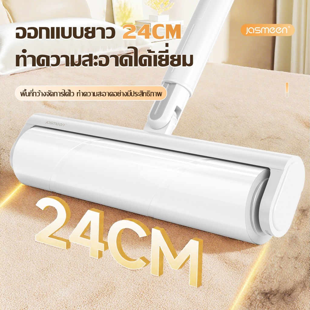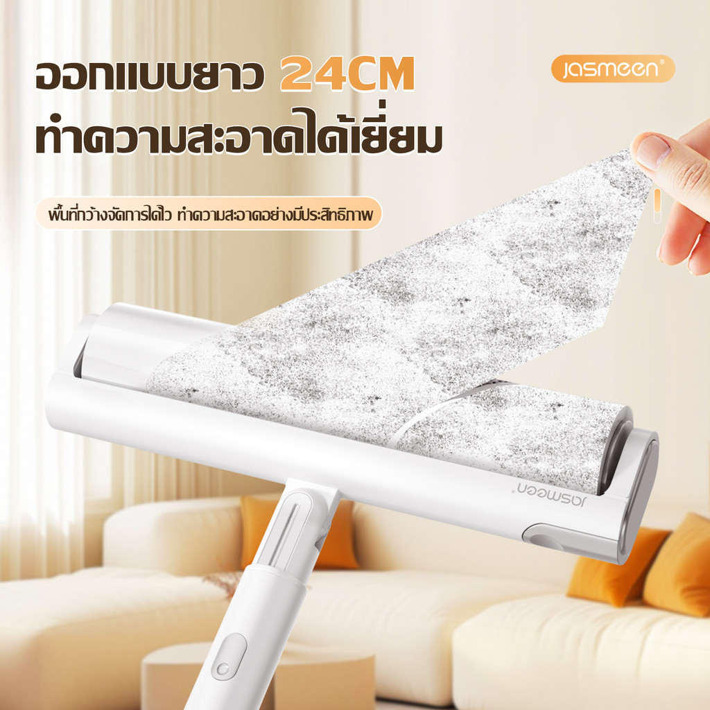 JASMEEN ลูกกลิ้งอัพเกรดรูปแบบใหม่ขนาด 24 ซม. ลูกกลิ้ง + 5 ม้วนกาวปรับความยาวจับผมสะสมลูกกลิ้งกําจัดฝุ่น