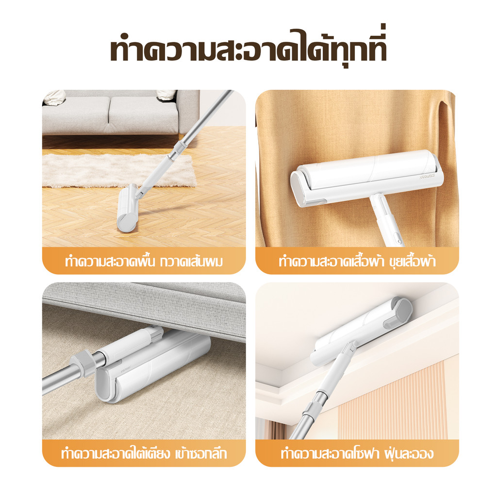 ที่กลิ้งกำจัดฝุ่น รีฟิลลูกกลิ้ง ที่กลิ้งขนแมว ยาว ลูกกลิ้งเก็บฝุ่น ที่กลิ้งกำจัดฝุ่นแบบยาว ลูกกลิ้งเก็บขน ยืดได้ ลู