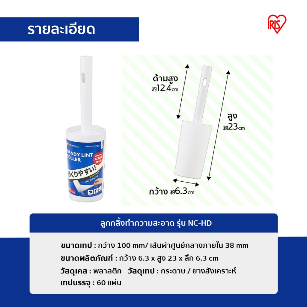 IRIS OHYAMA HANDY LINT ROLLER ลูกกลิ้งเก็บฝุ่น ที่กลิ้งเก็บขนและฝุ่นบนเสื้อผ้า รุ่น NC-HD คุณภาพ