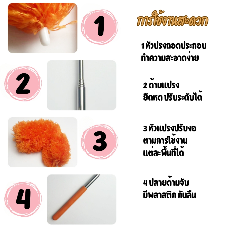 HomeHuang ไม้ปัดฝุ่นขนนก ยืด-หด ปรับขนาดได้ 80 cm. ไม้ปัดฝุ่นยาวที่ปัดฝุ่น ไม้ปัดฝุ่นไมโครไฟเบอร์ ขนแปรงอ่อนนุ่มหักงอได้