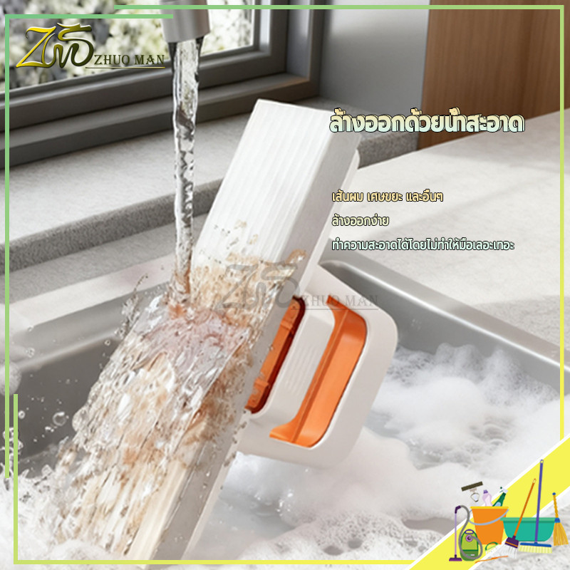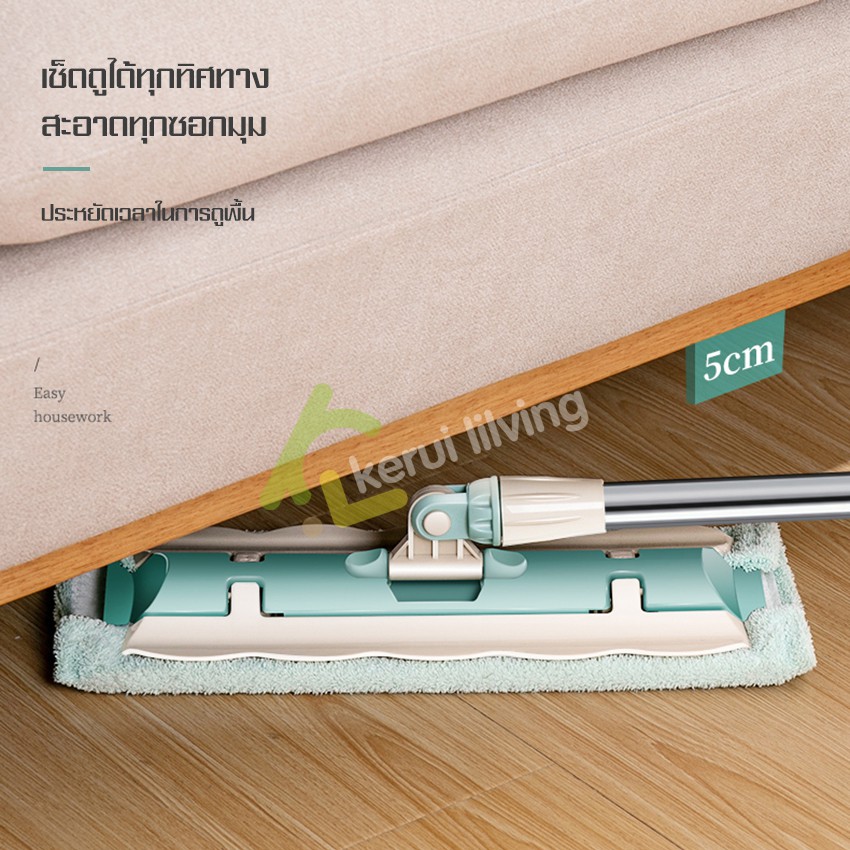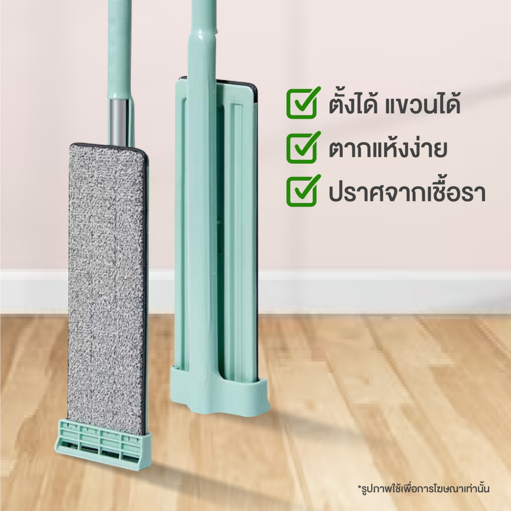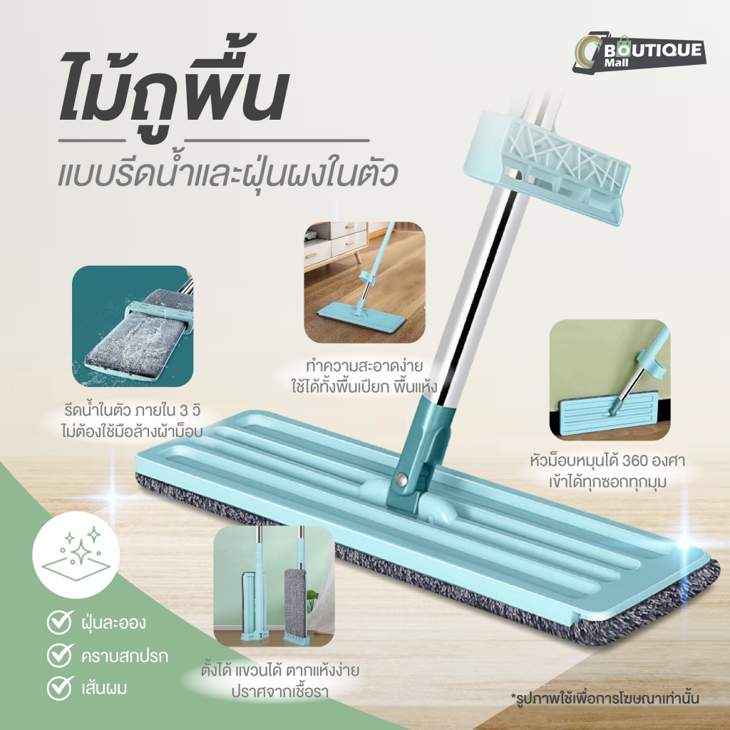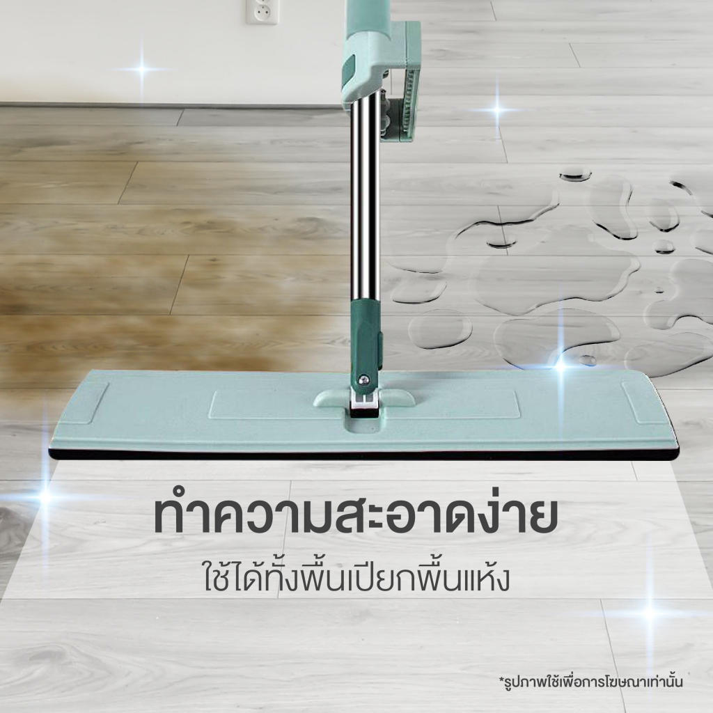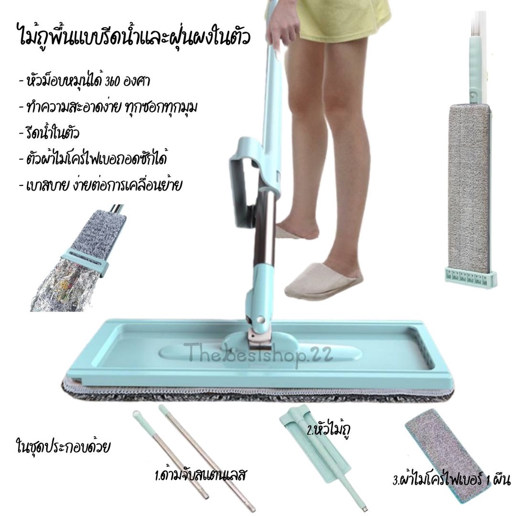 ไม้ถูพื้นแบบรีดน้ำ ไม้ม็อบหัวแบน รีดน้ำ ผงฝุ่นได้ในตัว พร้อมผ้าไมโครไฟเบอร์ หมุนได้ 360 องศา