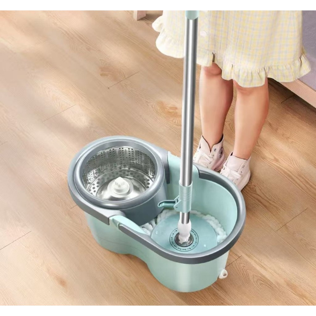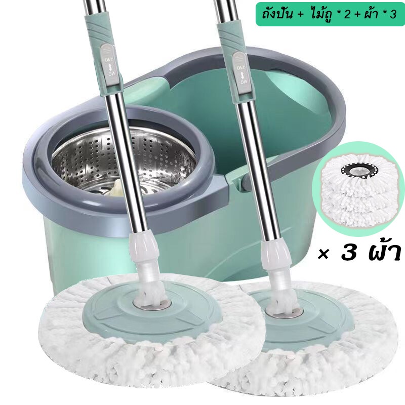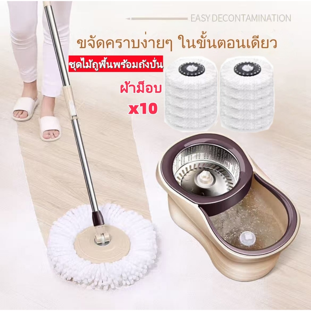 ไม้ถูพื้นหมุนได้360องศาไม้ถูพื้น พร้อมถังปั่น ครบชุด แถมฟรีผ้าม็อบ ชุดถังปั่นสแตนเลส พร้อมผ้าม๊อบ 10 ผืน