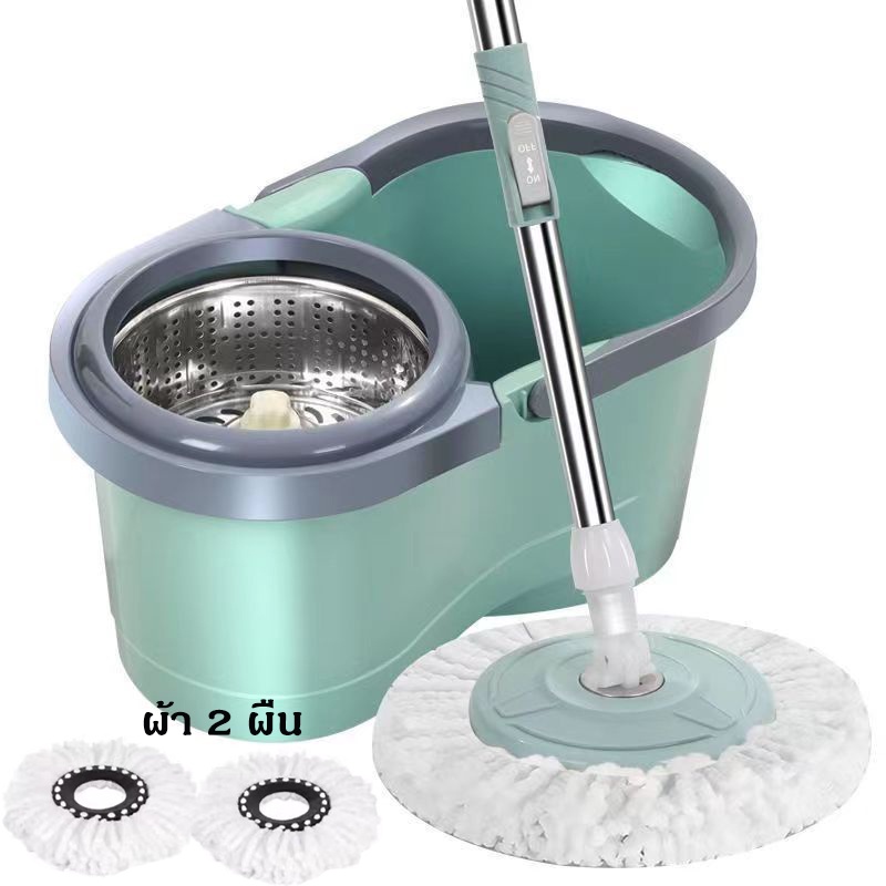 ไม้ถูพื้นพร้อมถังปั่นสแตนเลส (มีผ้าม็อบ 2 ผืน) มีหลายสีให้เลือก