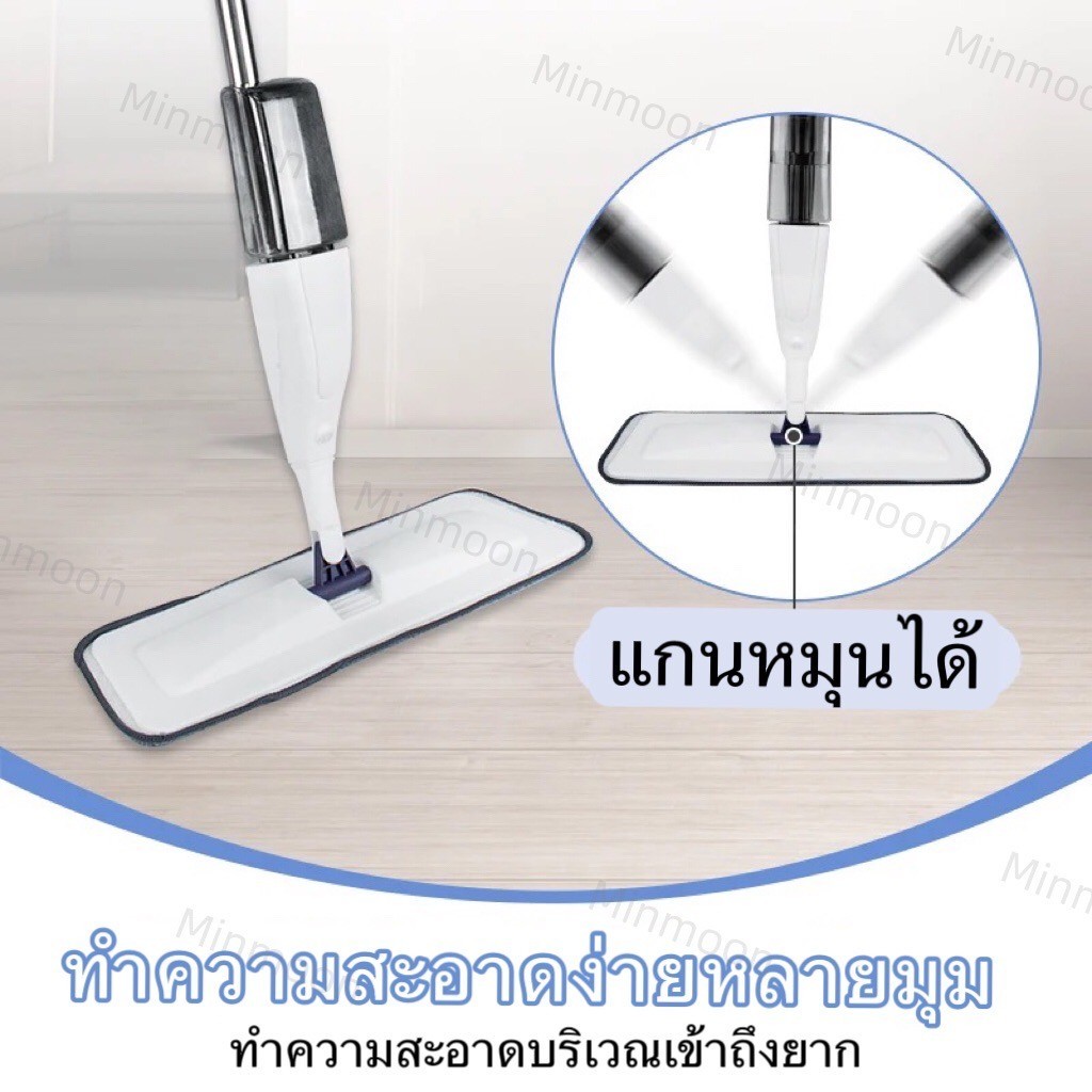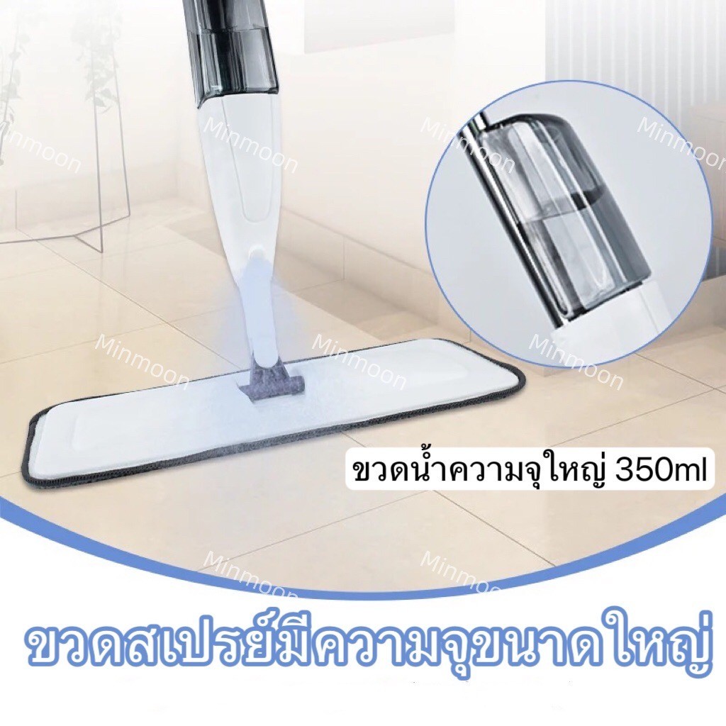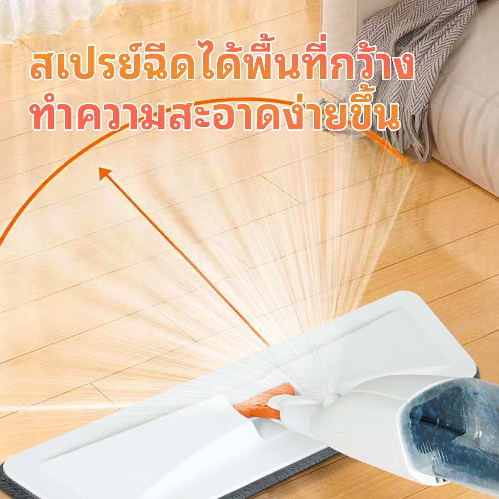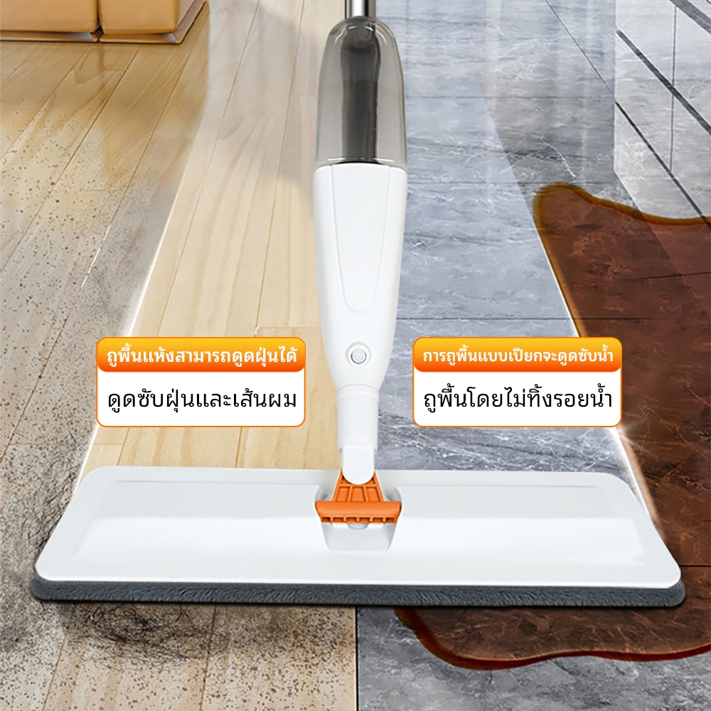 ไม้ถูพื้นสเปรย์ ไม้ถูพื้นหัวแบน ไม้ถูแบบดันฝุ่น พร้อมกระบอกฉีดน้ำในตั เปียกและแห้ง สะอาดง่าย หมุนได้ 360 องศา