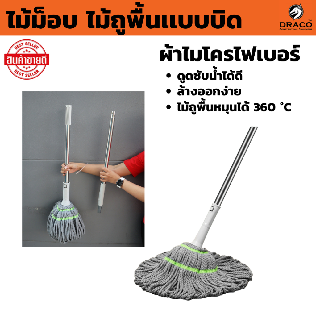 ไม้ถูพื้น ไม้ม็อบ ไม้ม็อบถูพื้น ที่ถูพื้น หัวม็อบหมุน360องศา ไม้ถูพร้อมผ้าม็อบ ผ้าม็อบไมโครไฟเบอร์