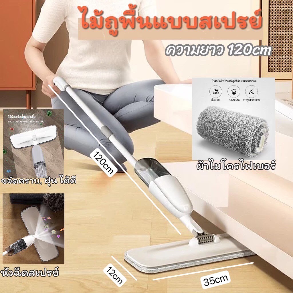 ไม้ถูพื้นสเปรย์ Spray mop ไม้ถูพื้นแบบพ่นน้ำหัวแปลงหมุนได้ 360องศา ด้ามยาว 120cm