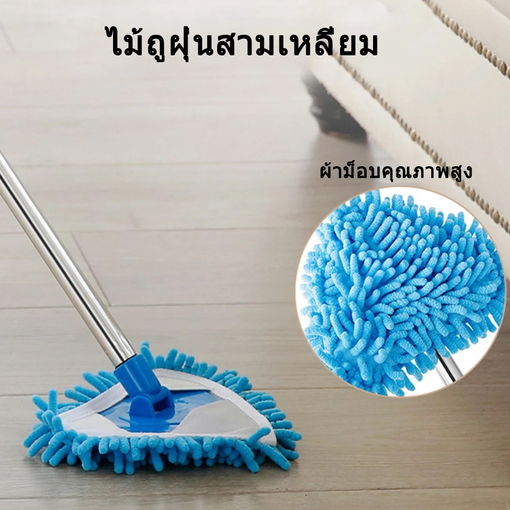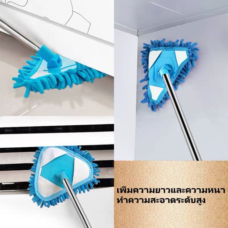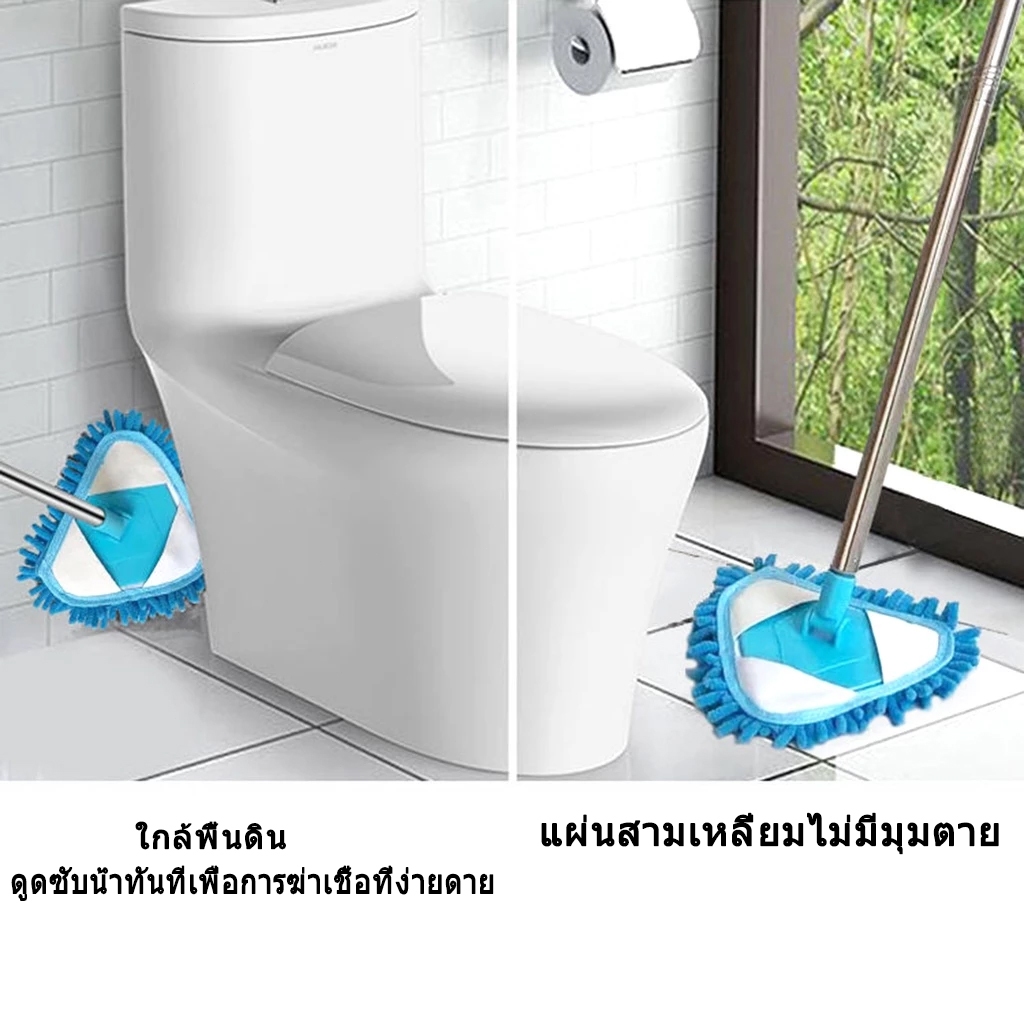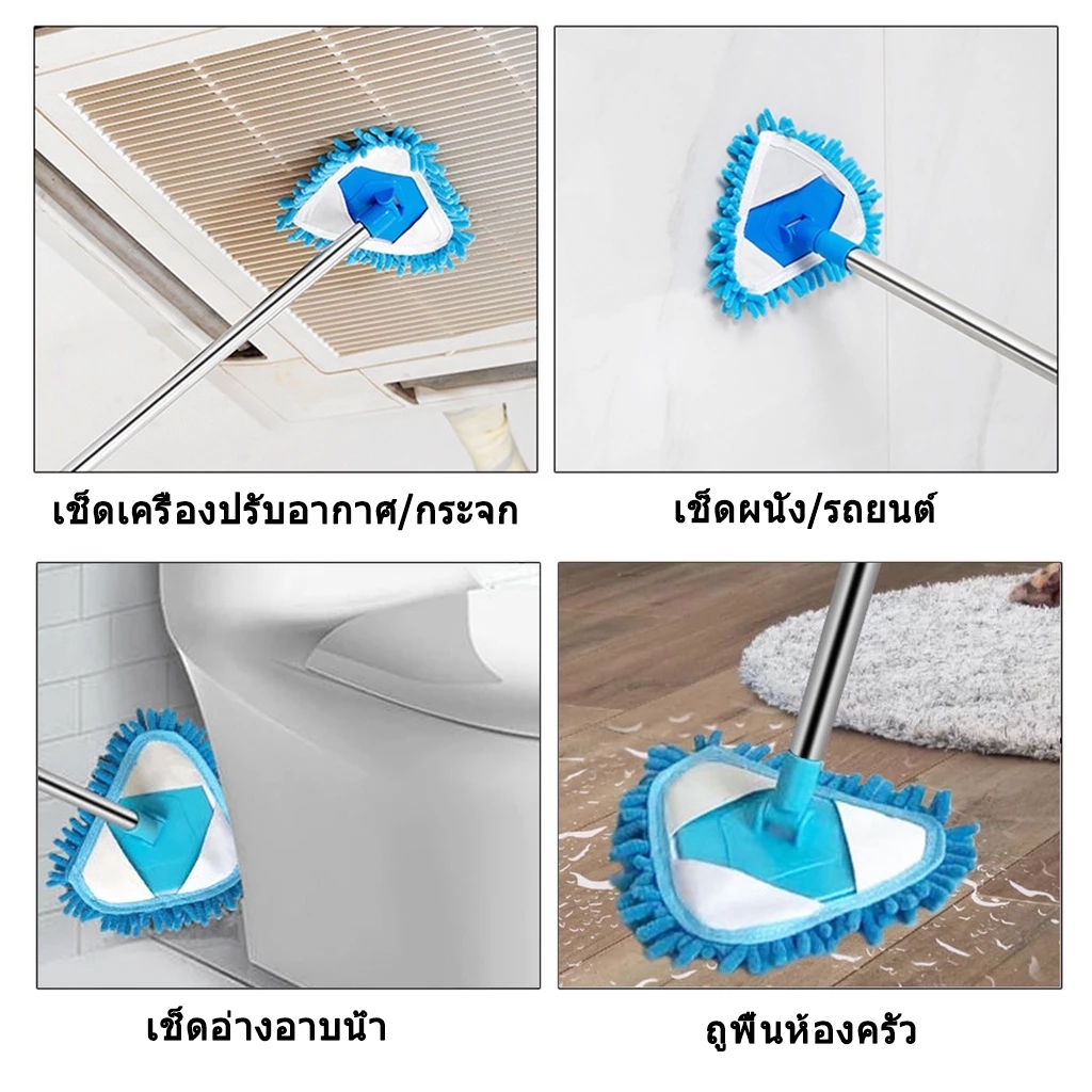 ไม้ถูพื้นสามเหลี่ยม 2in1 ยืดหด 2 เมตร หมุน180° ผ้าซับขี้เกียจ ซับน้ำไม่ทิ้งคราบ ทำความสะอาดพื้น ผนัง กระจก ซอกมุม