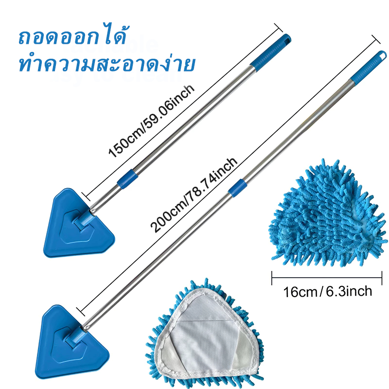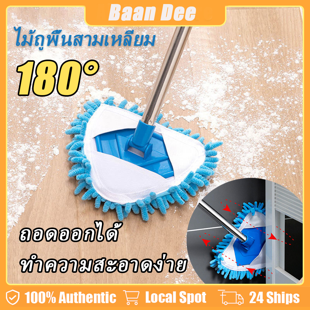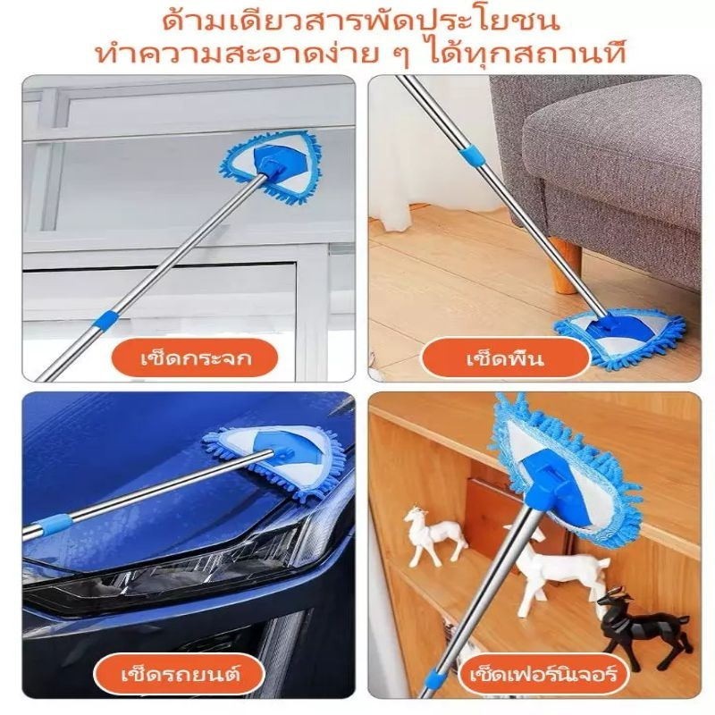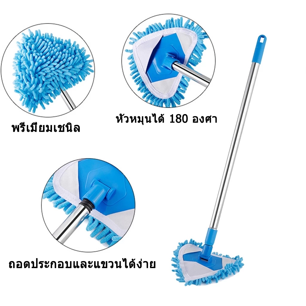 ไม้ถูพื้นสามเหลี่ยม 2in1 ยืดหด 2 เมตร หมุน180° ผ้าซับขี้เกียจ ซับน้ำไม่ทิ้งคราบ ทำความสะอาดพื้น ผนัง กระจก ซอกมุม
