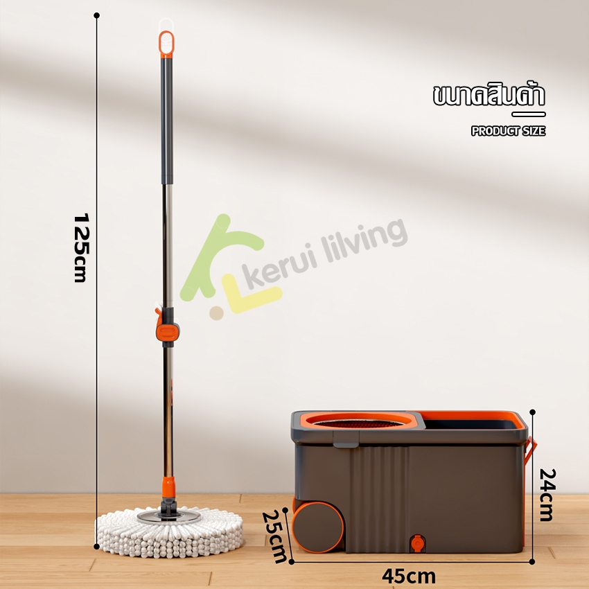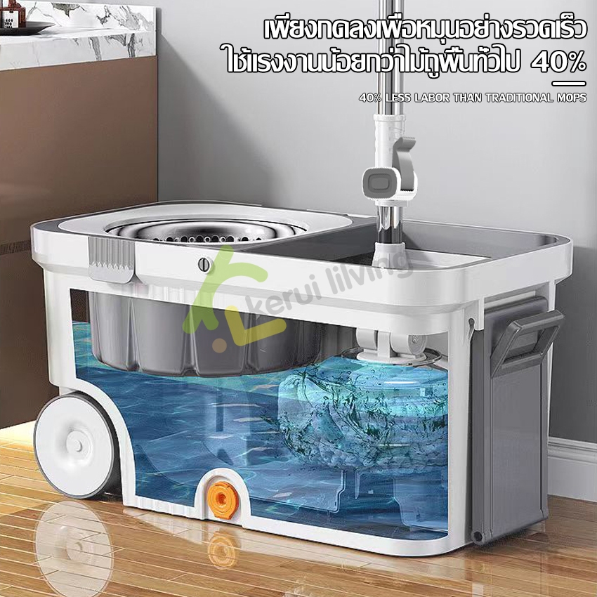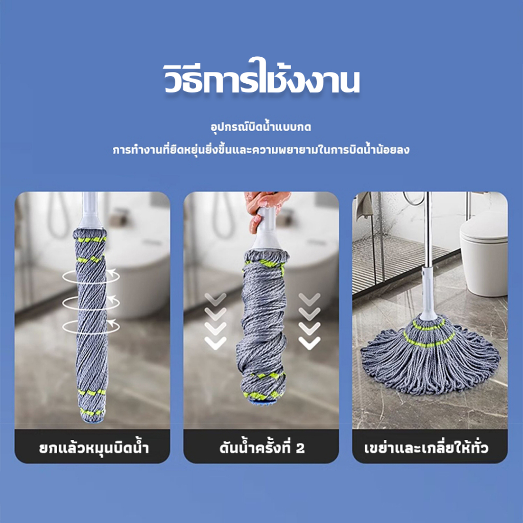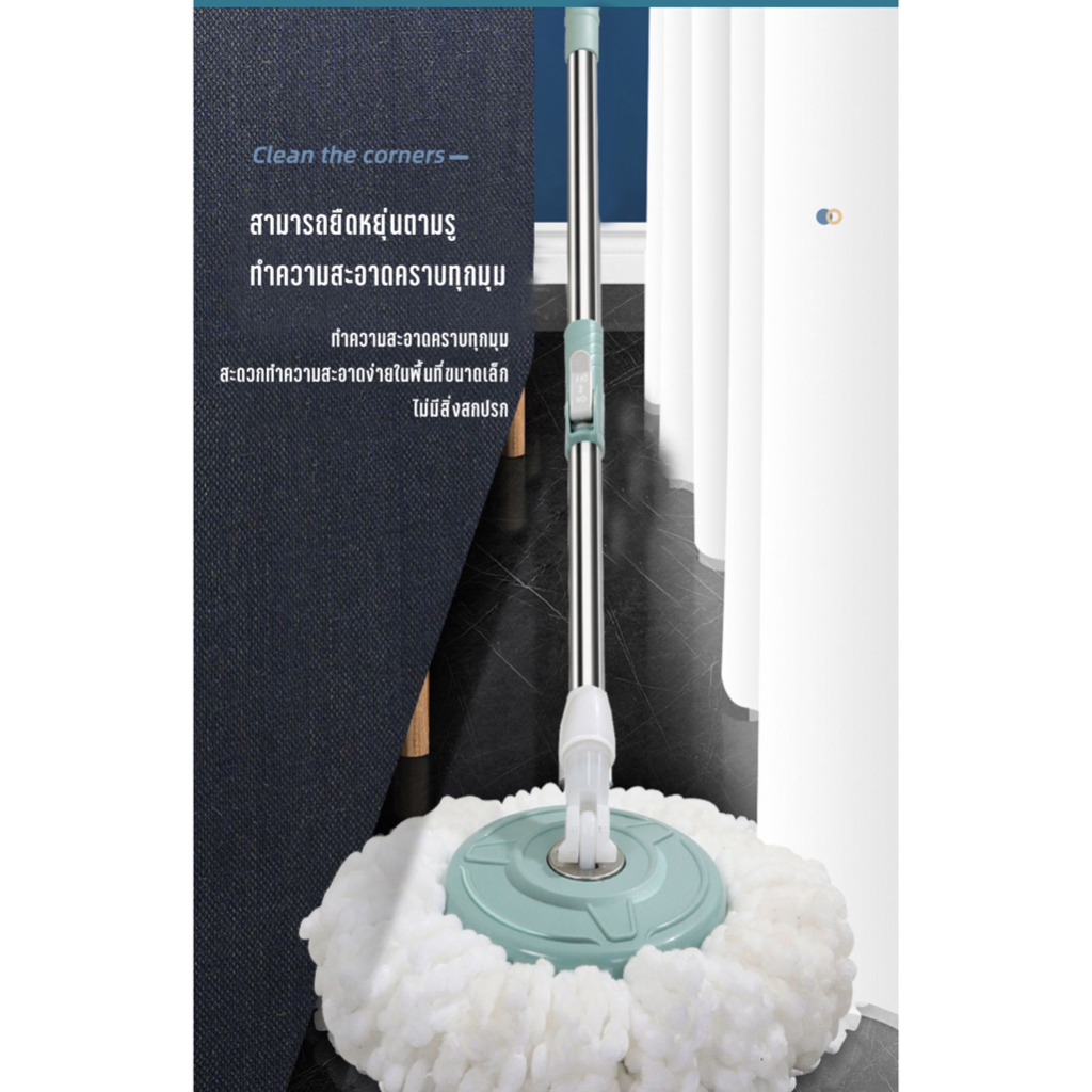 KUMALL ไม้ถูพื้น Spin Mop ปี2023 สำหรับทำความสะอาดและขจัดน้ำเสีย ยกไม้ถูพื้นขึ้นลงเพื่อเปลี่ยนโหมดการทำความสะอาด