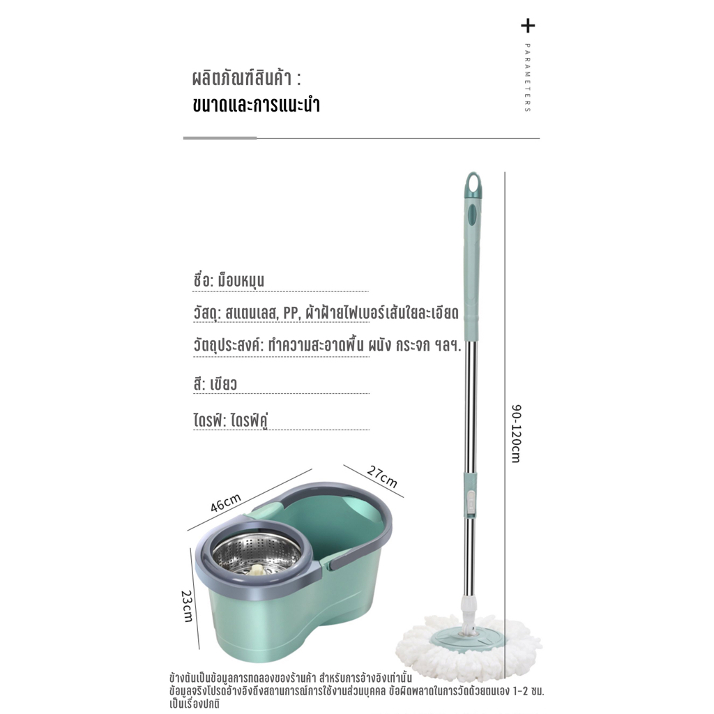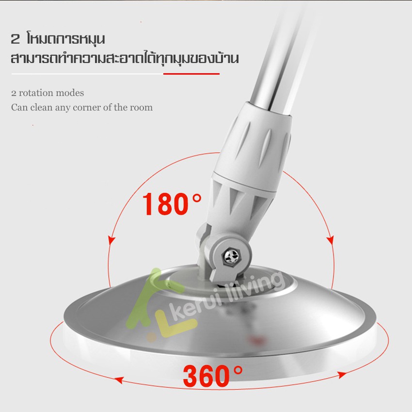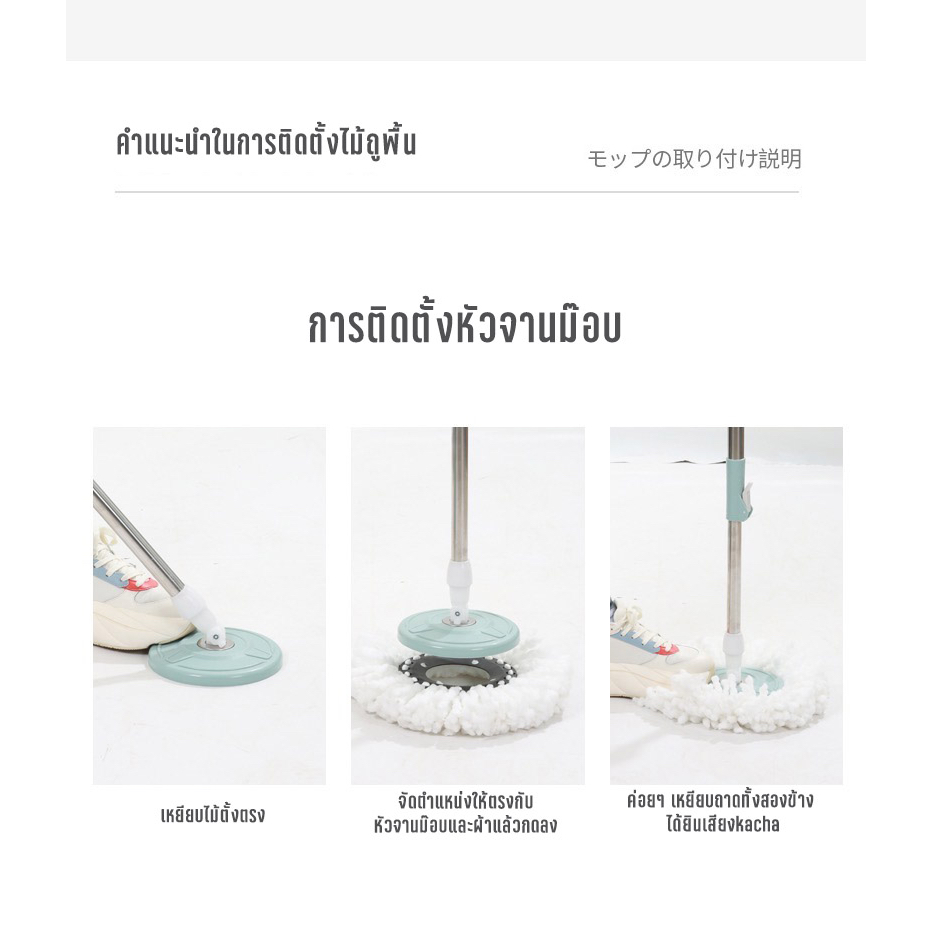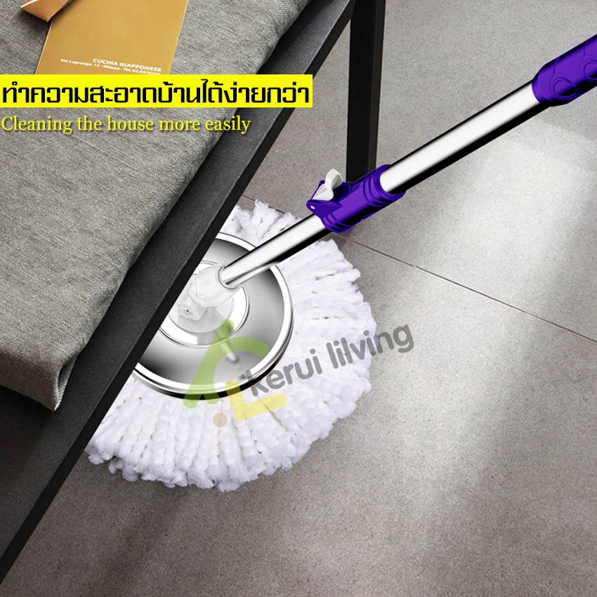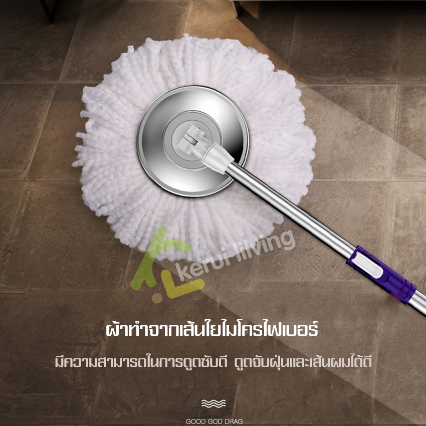 KUMALL ไม้ถูพื้น Spin Mop ปี2023 สำหรับทำความสะอาดและขจัดน้ำเสีย ยกไม้ถูพื้นขึ้นลงเพื่อเปลี่ยนโหมดการทำความสะอาด