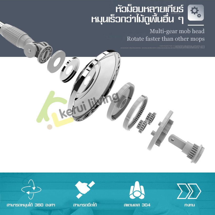 EQUAL ไม้ม๊อบ ไม้ถูพื้นสเปรย์ Spray Mop ม๊อบดันฝุ่น มีที่ฉีดน้ำ หมุนได้ 360 องศา เเข็งเเรง ทนทาน ใช้งงานง่าย