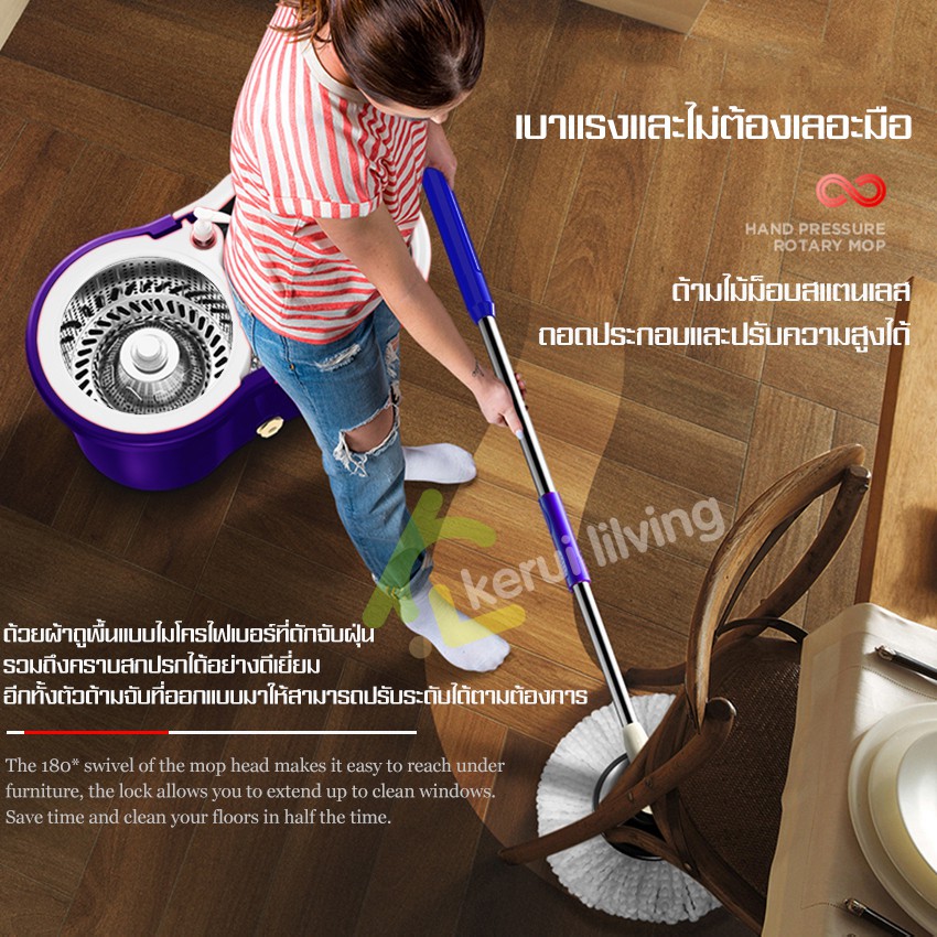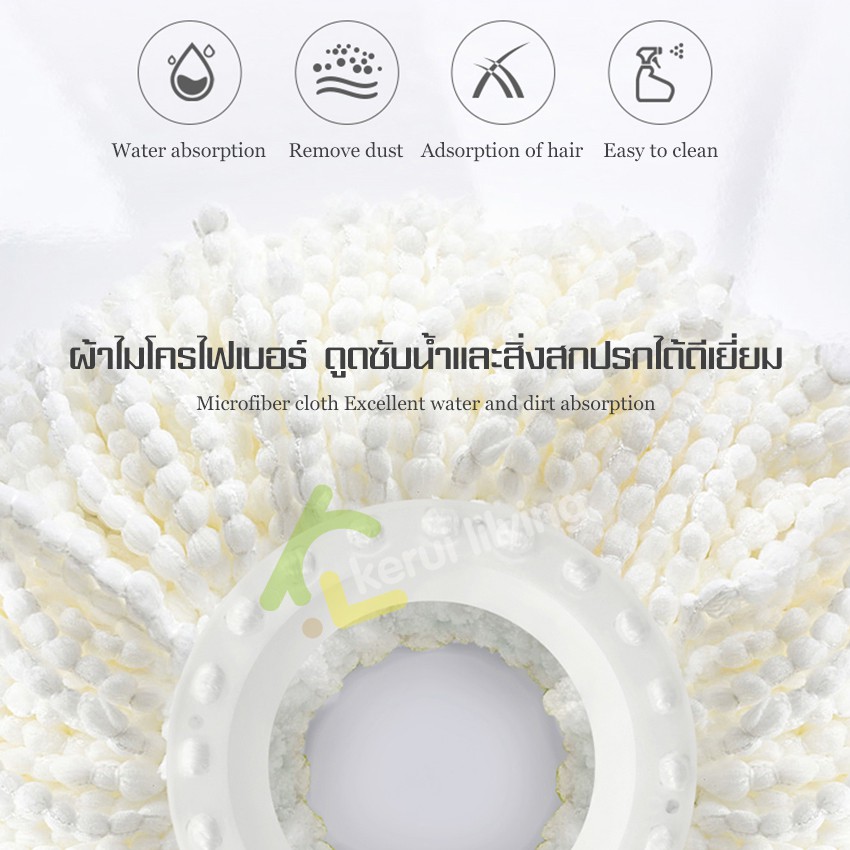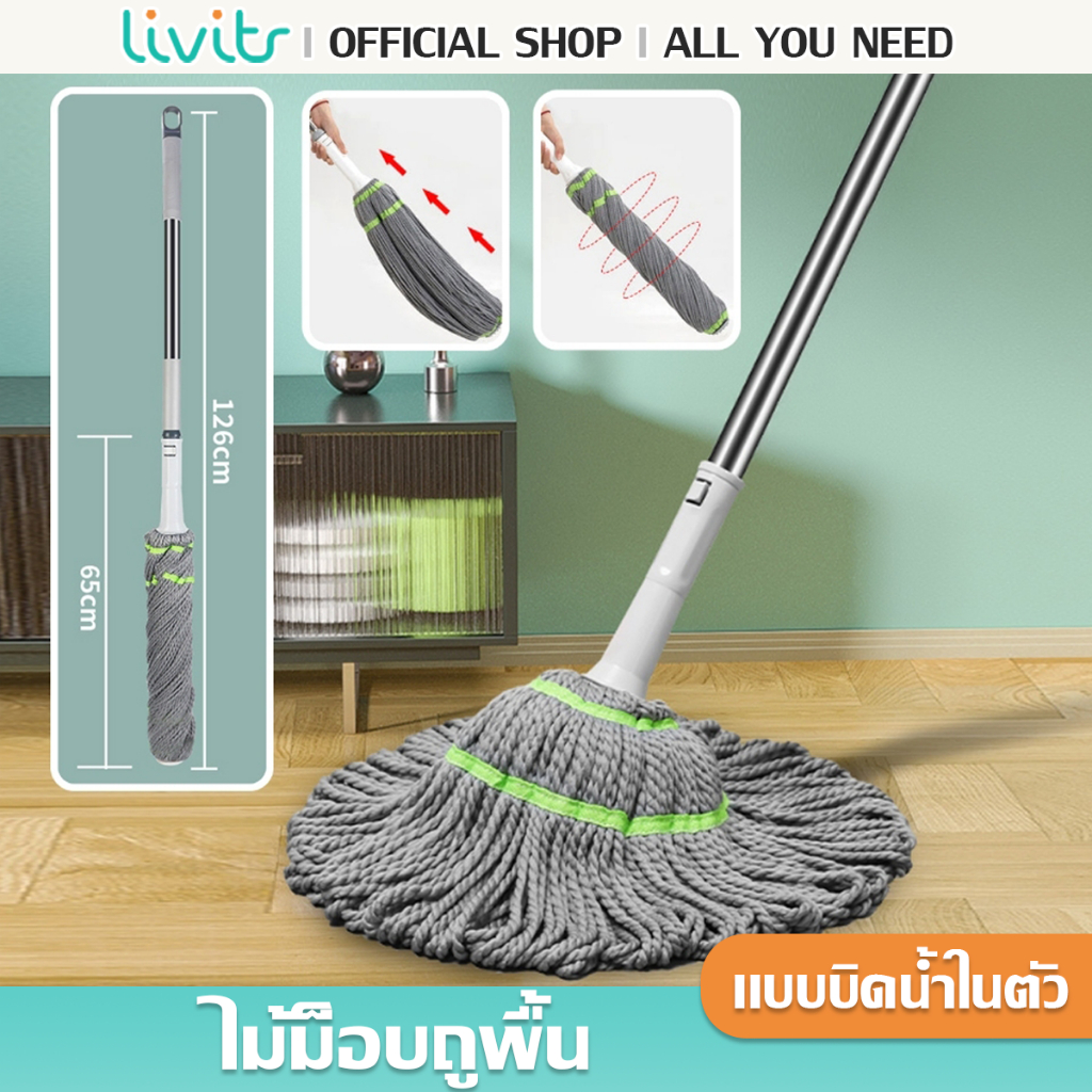 LIVITS ไม้ถูพื้น ไม้ม็อบถูพื้นแบบบิดล็อค ไมโครไฟเบอร์ รุ่นผ้าหนาพิเศษ ซับน้ำแห้ง
