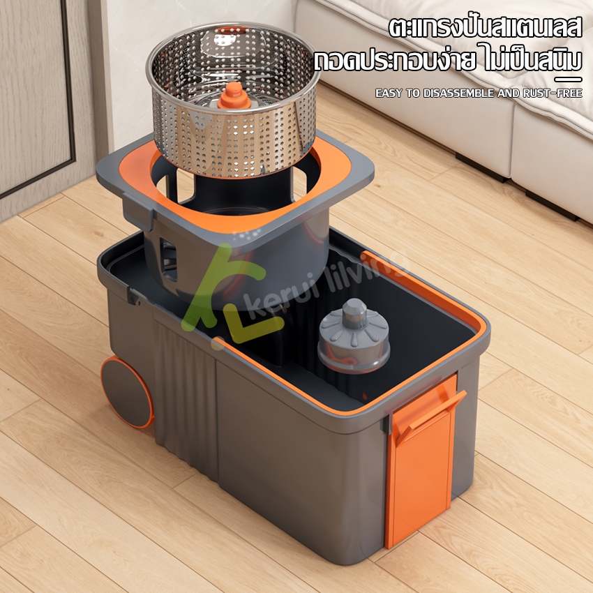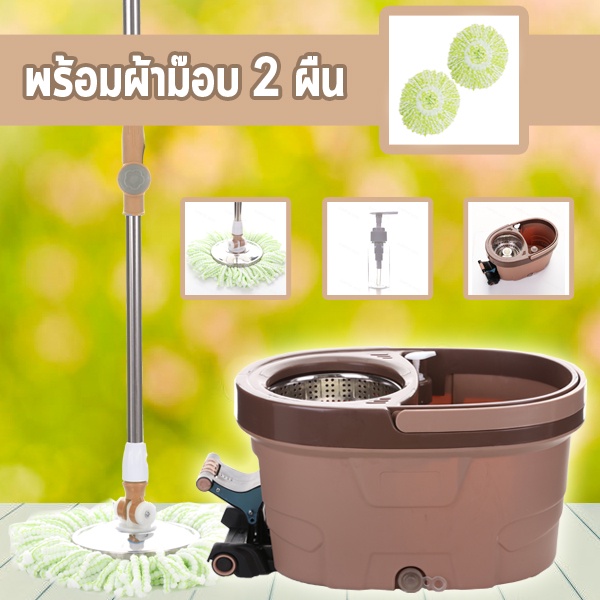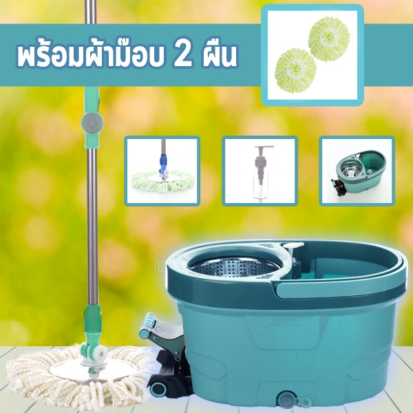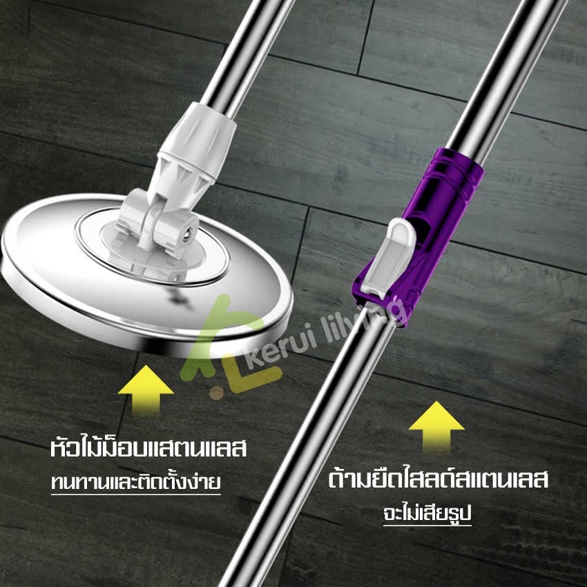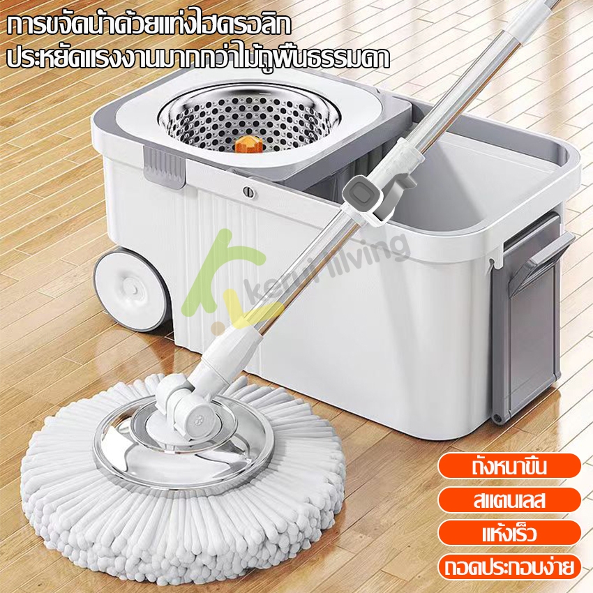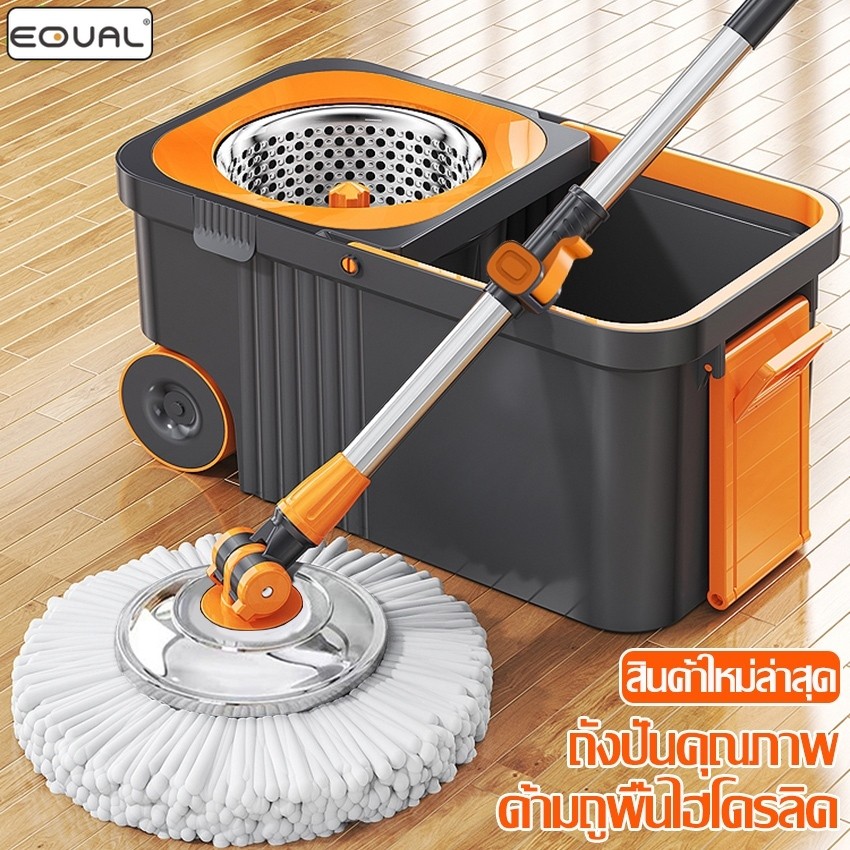 EQUAL ไม้ถูพื้น Spin Mop ชุดถังปั่นสแตนเลส ถังถูพื้น ไม้ม็อบถูพื้น ถังปั่นไม้ม๊อบ ขนาดใหญ่ มีหูหิ้ว ใช้งานง่าย