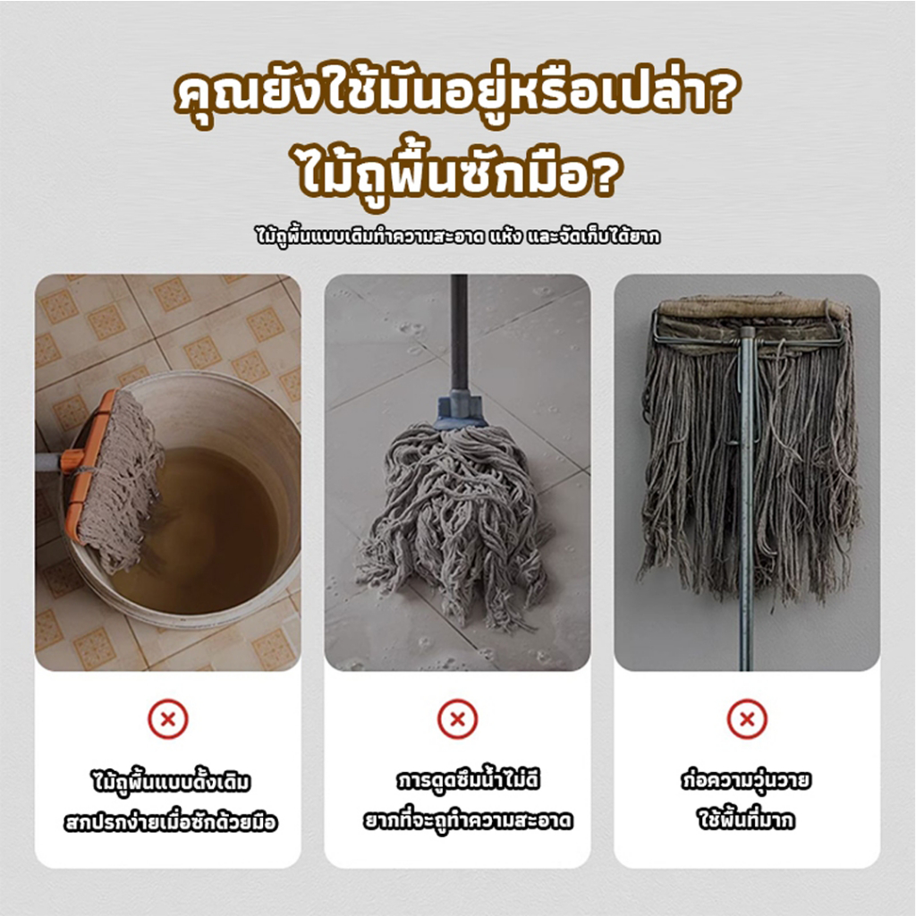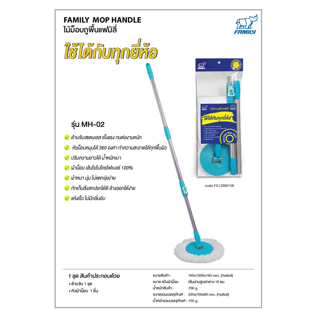 Family แพคคู่ ไม้ม๊อบถูพื้น พร้อมผ้าม๊อบ ด้ามไม้สแตนเลส