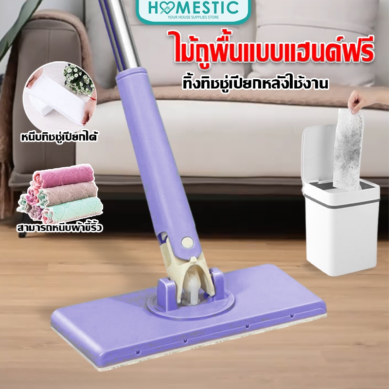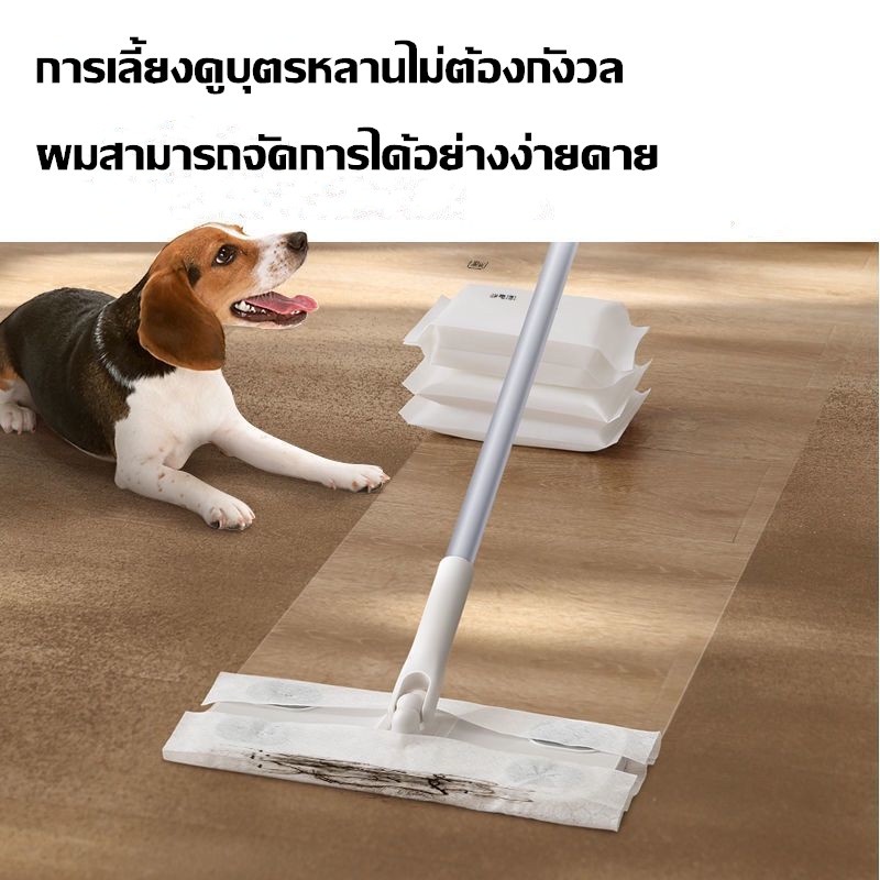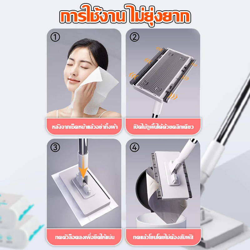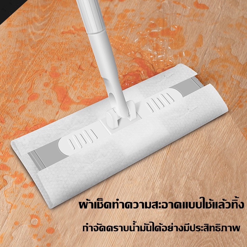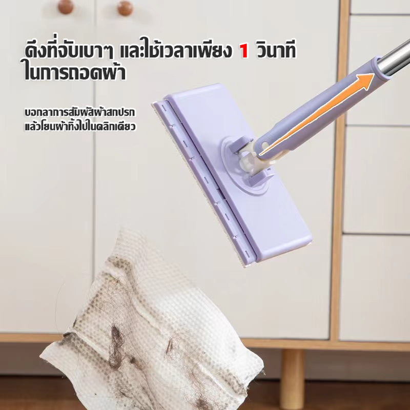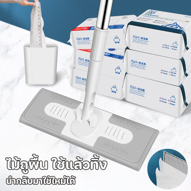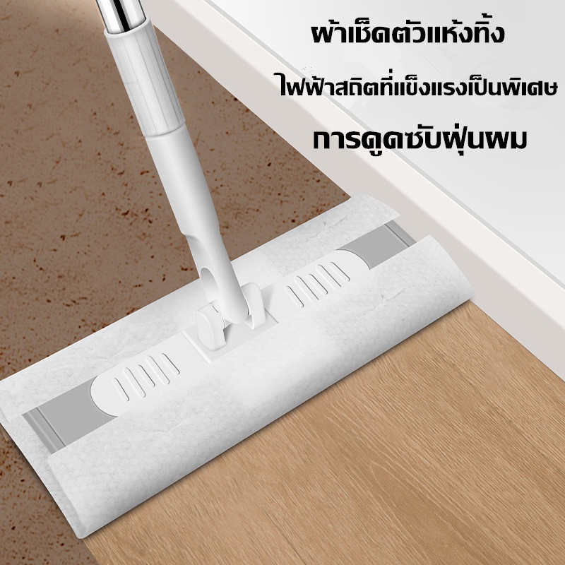 COD ไม้ถูพื้น ใช้แล้วทิ้ง ม็อบดันฝุ่นไฟฟ้าสถิต แผ่นซับแห้ง/เปียก นํากลับมาใช้ใหม่ได้ Lazy Mop