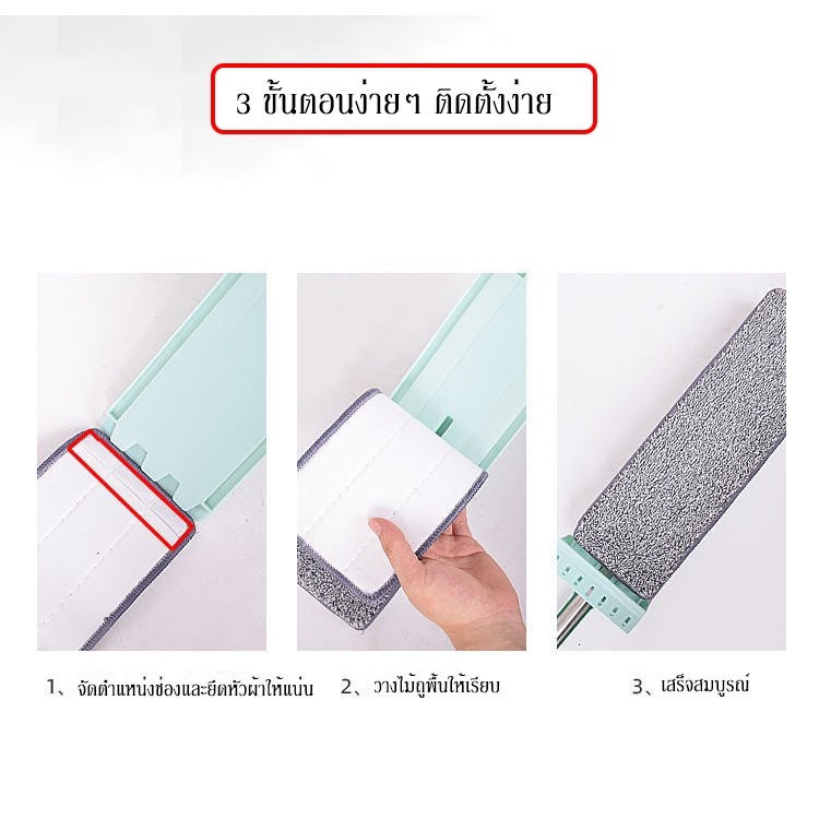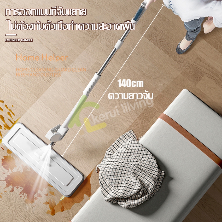 Greenforst Lazy Mop ไม้ถูพื้นแบบรีดน้ำและฝุ่นผงในตัว พร้อมผ้า 1ผืนตั้งได้ รุ่น 5284/5391