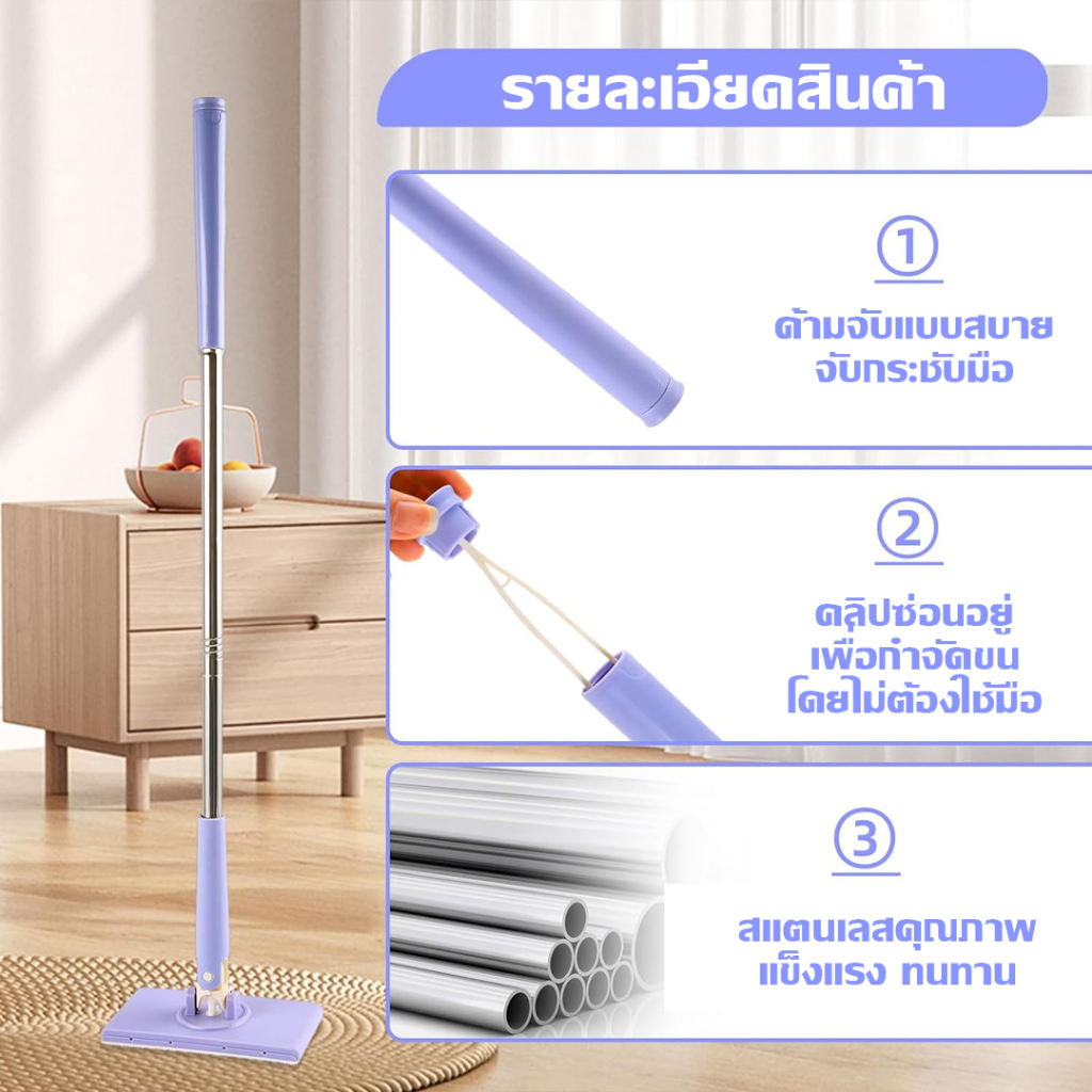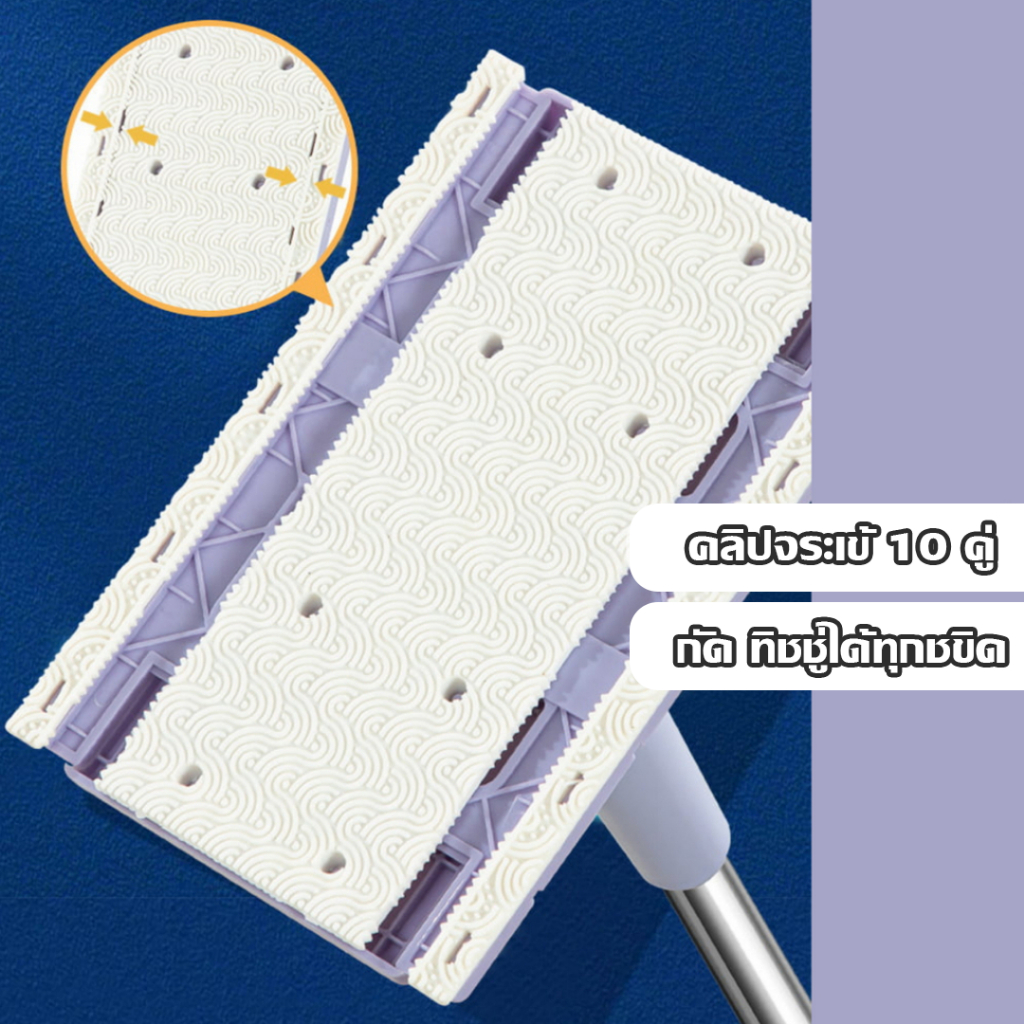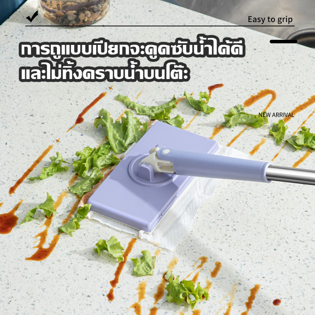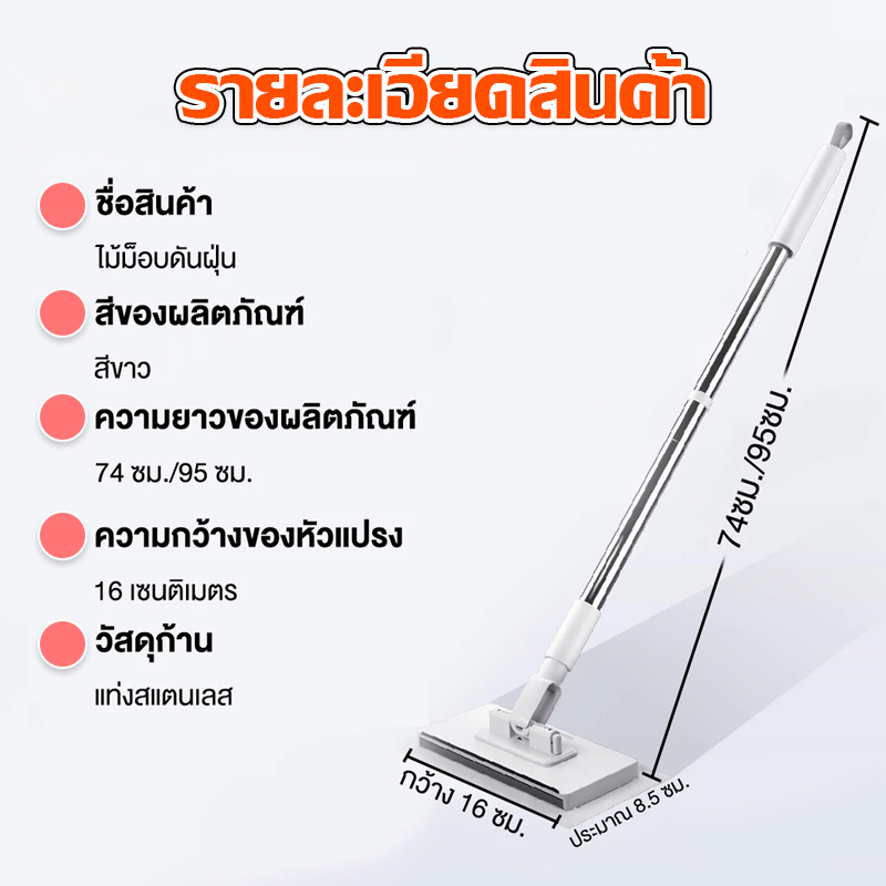 LIVITS ไม้ถูพื้นดันฝุ่น ใช้กับผ้าถูพื้นแบบเปียกและแห้ง ไม้ถูพื้นอเนกประสงค์ ไม้ถูขนาดเล็ก