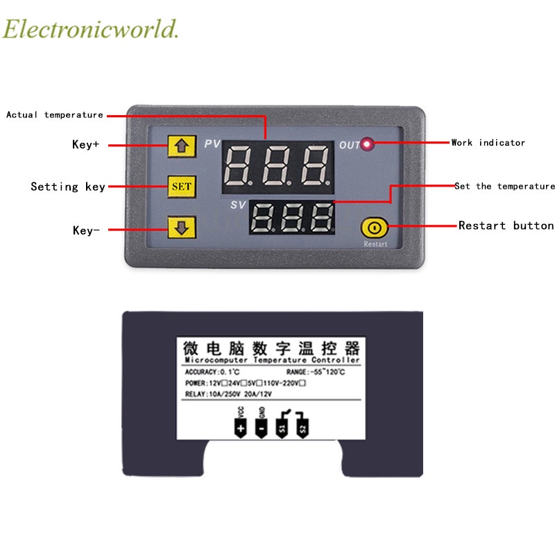 W3230 12V 24V AC110-220V Probe ด้าย 20A อุณหภูมิดิจิตอลควบคุมจอแสดงผล LED Thermostat ความร้อน/ Cooling Controller
