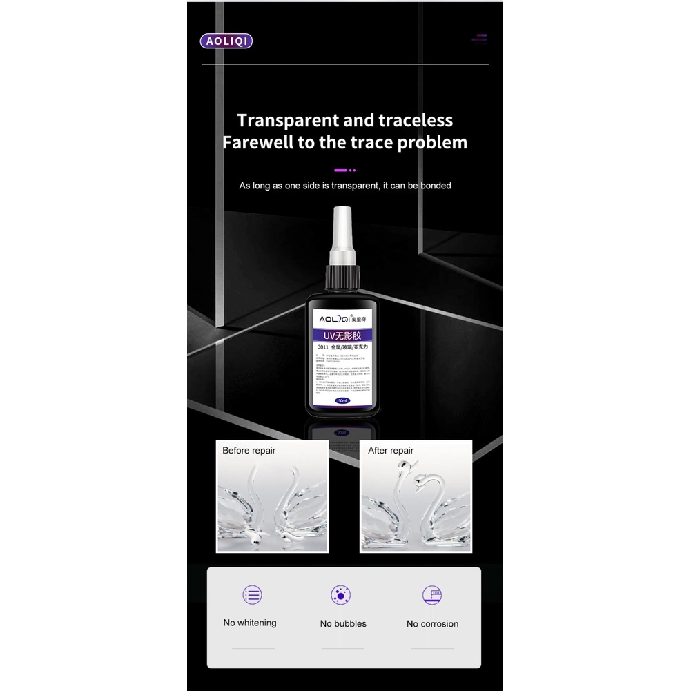 กาวยูวีแห้งเร็วพลาสติกโลหะอะคริลิคกาวยูวีการฉายรังสียูวีบ่มได้อย่างรวดเร็วหายกาวเหลว
