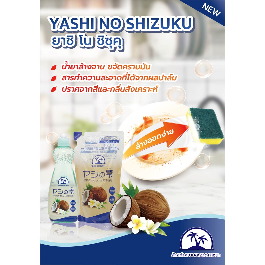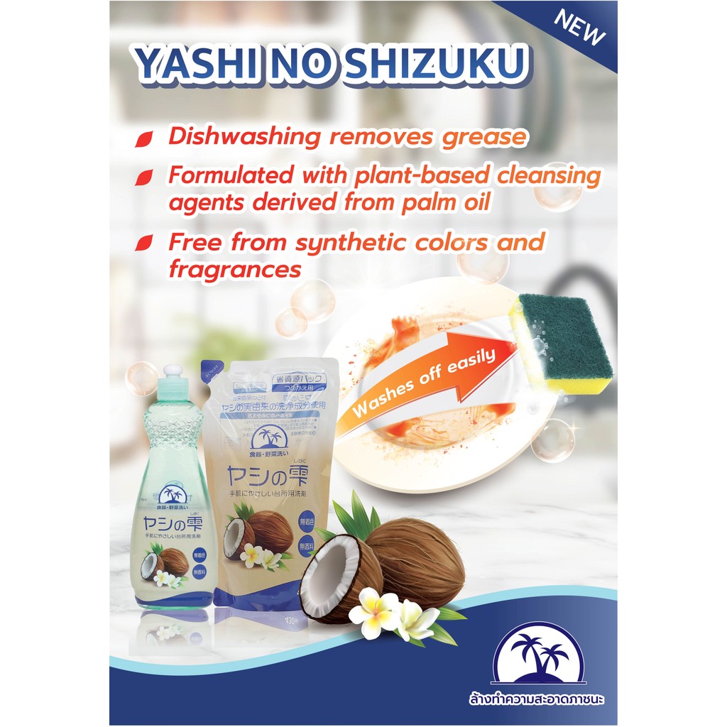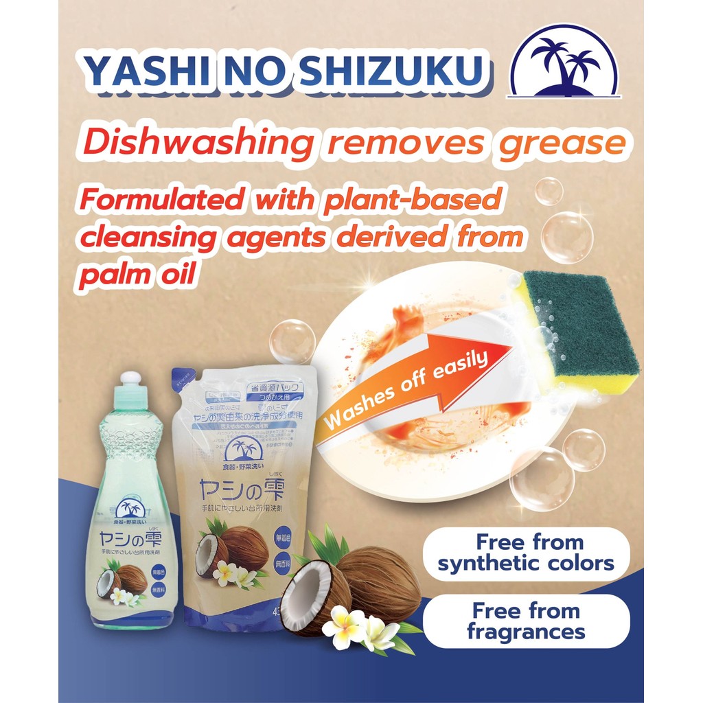 YASHI-NO-SHIZUKU REFILL PACK (DISHWASH DETERGENT) 430 ml / ผลิตภัณฑ์ล้างจาน ถุงเติม ใช้ทำความสะอาดภาชนะ เครื่องใช้ในครัว