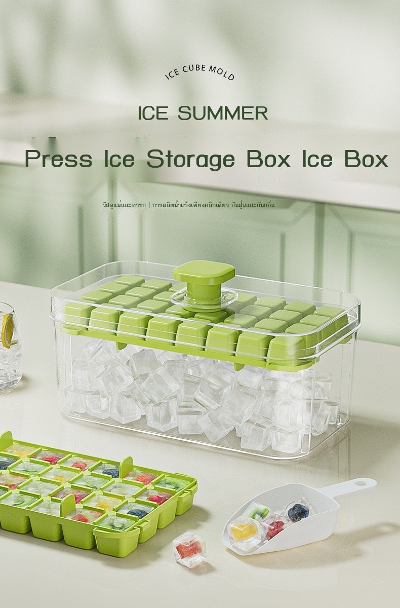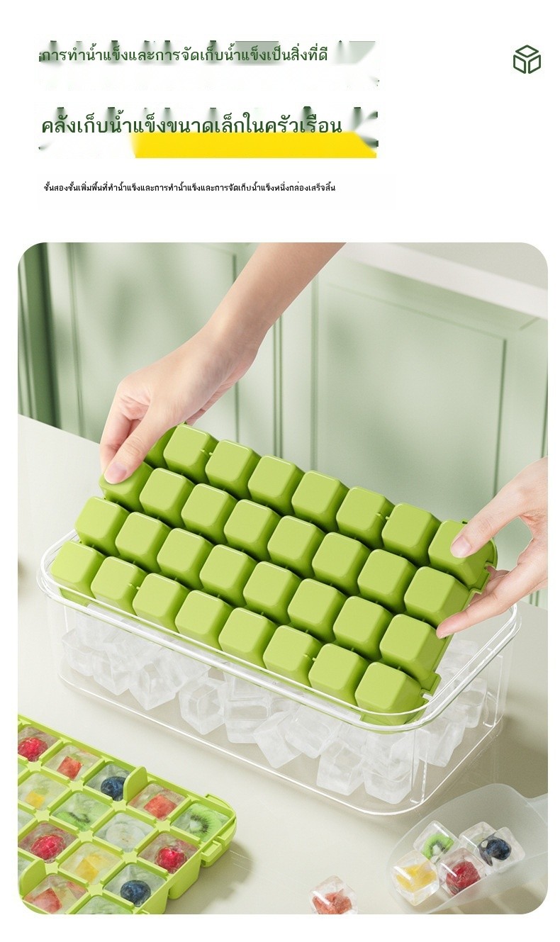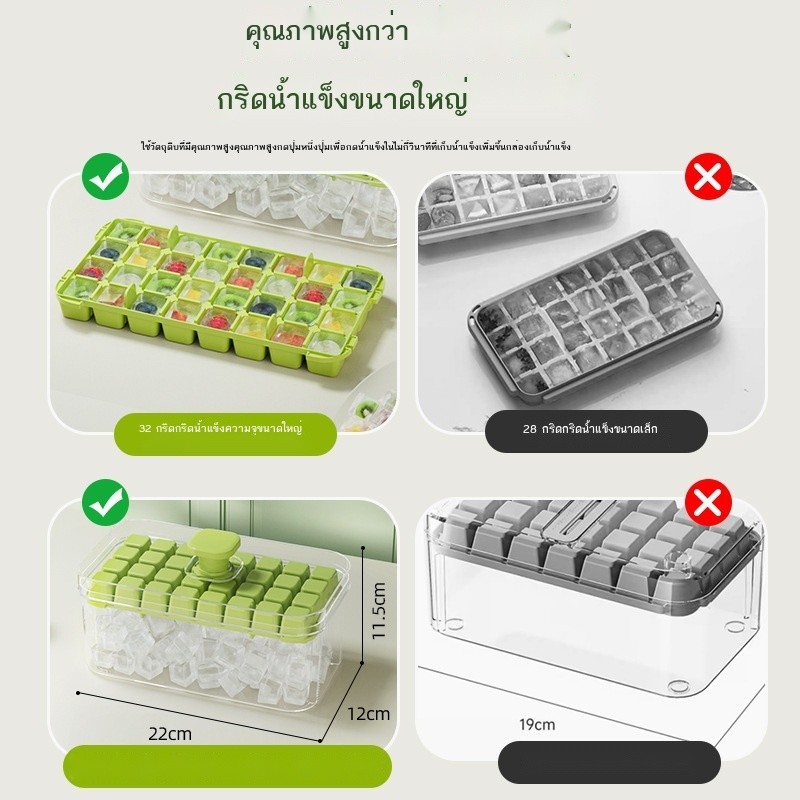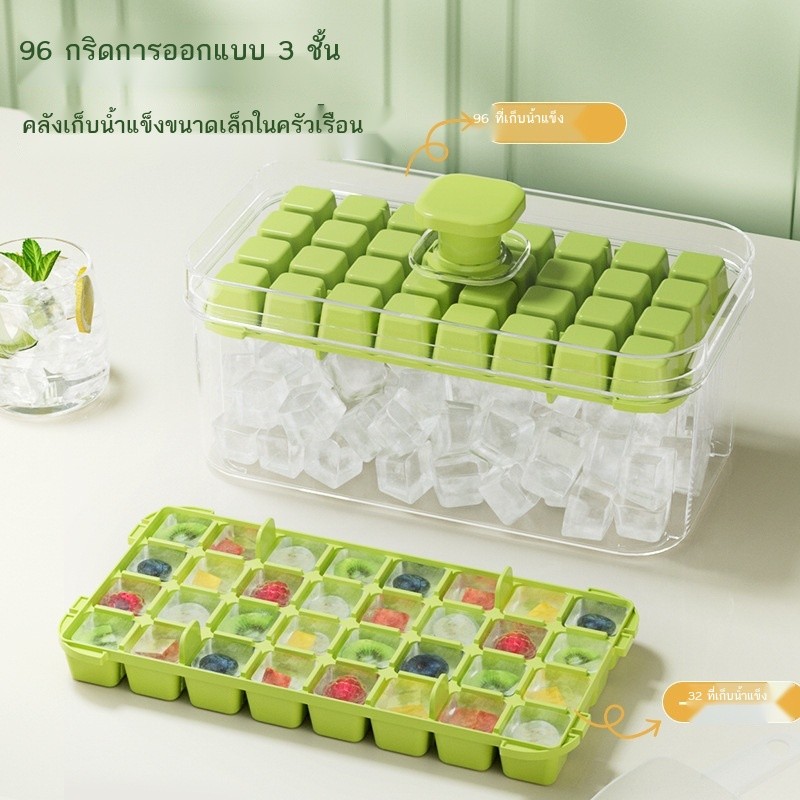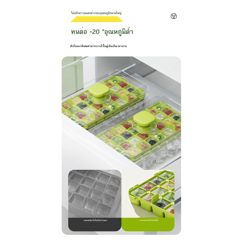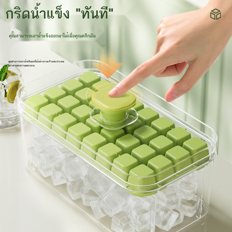 กดกล่องน้ําแข็งซิลิโคนเดียวสองชั้นตารางก้อนน้ําแข็งแม่พิมพ์แบบพกพาความจุขนาดใหญ่กล่องเก็บน้ําแข็งที่มีฝาปิดถาดน้ําแข็ง