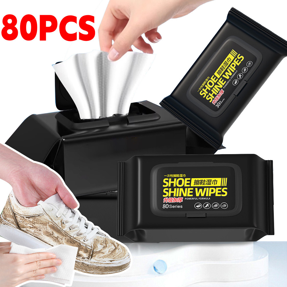 ผ้าเช็ดทําความสะอาดรองเท้าเดินทาง | ผ้าเช็ดทําความสะอาดแบบพกพา 18×10 ซม. สําหรับรองเท้าผ้าใบ, 80 แผ่นพร้อมน้ํายาทําความสะอาดที่แข็งแกร่ง, ขจัดคราบอย่างรวดเร็วสําหรับยิม/ไตรปส์/ใช