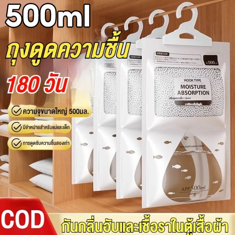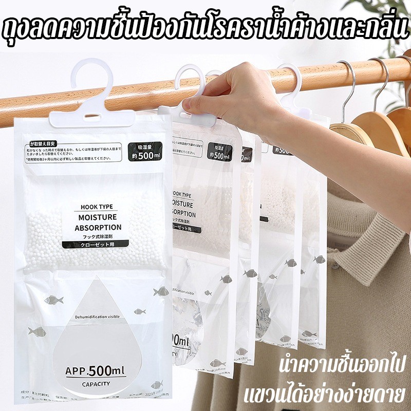 ถุงดูดความชื้น500ml ถุงดูดความชื้นแขวนได้ ดับกลิ่นอับเชื้อรา แขวนตู้เสื้อผ้าได้ ดูดซับความชื้นดูดซับเร็ว