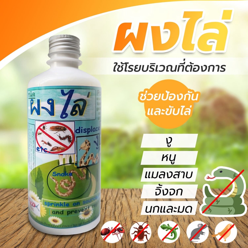 ไล่งู ไล่สัตว์เลื้อยคลาน ไล่แมลง มด ปลวก (PL) ชนิดผง ใช้กลางแจ้งได้ดี ทนแดด ทนฝน