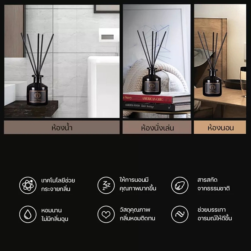 ก้านไม้หอม ปรับอากาศ กลิ่นโรงแรมห้าดาว น้ำมันหอมระเหย น้ำหอมอโรม่าก้านน้ำหอม 50มล พร้อมกล่อง น้ำหอมดับกลิ่น
