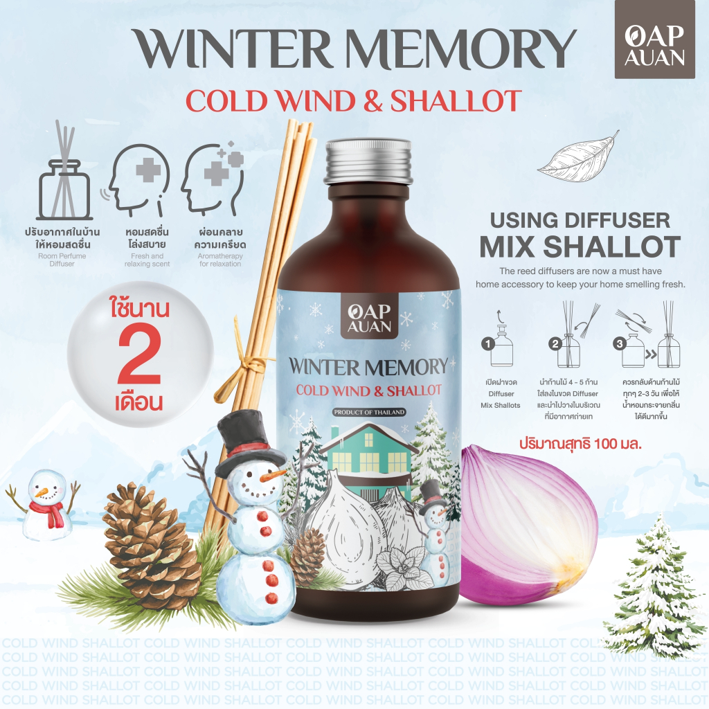 ก้านไม้หอม + หอมแดงสกัด (กลิ่นฤดูหนาว) ⛱️OapAuan Reed Diffuser Mix Shallot Extract☀️