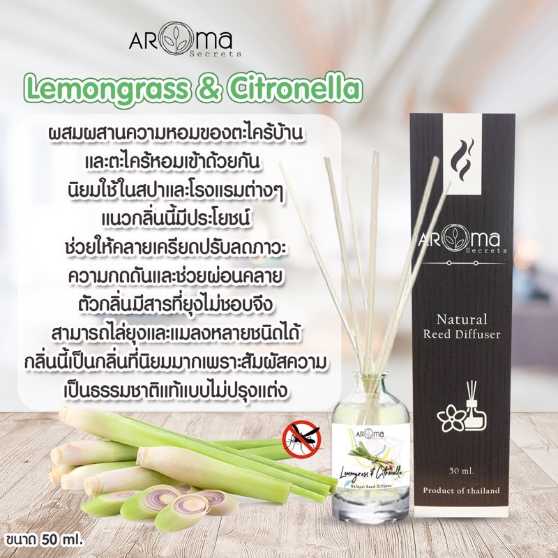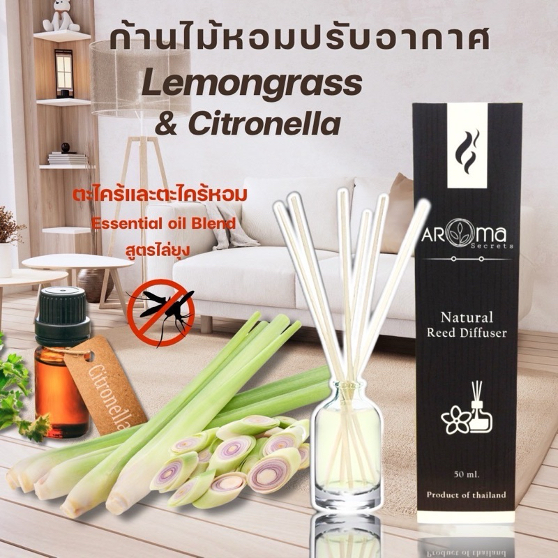ตะไคร้และตะไคร้หอม (สูตรไล่ยุงและแมลง) Lemongrass & Citronella ก้านไม้หอมปรับอากาศ ขนาด50ml. by Aroma Secrets