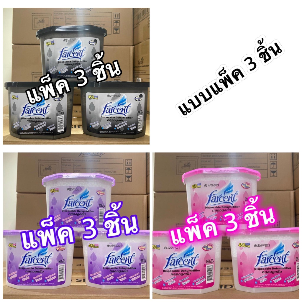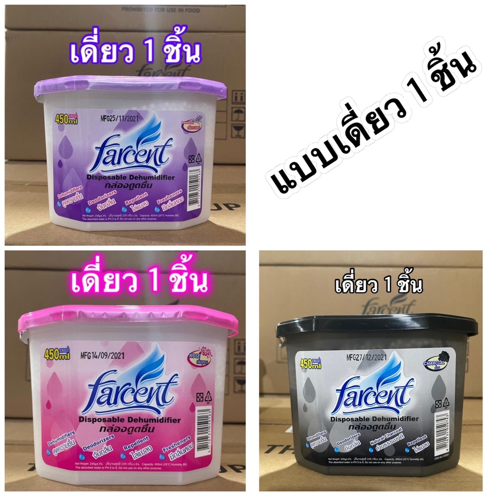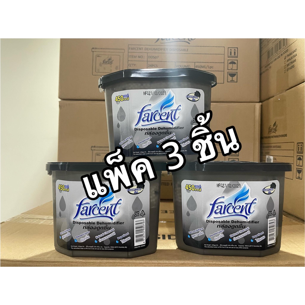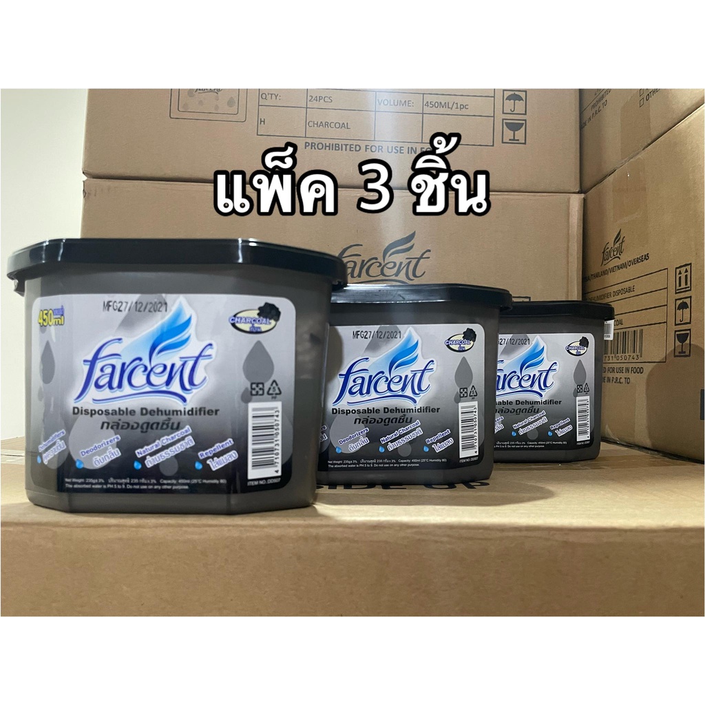 ที่ดูดความชื้น กล่องดูดความชื้น FARCENT D-507 CHARCOAL แบบเดี่ยว1ชิ้น/แบบแพ็ค3ชิ้น ขนาด 450 มล.