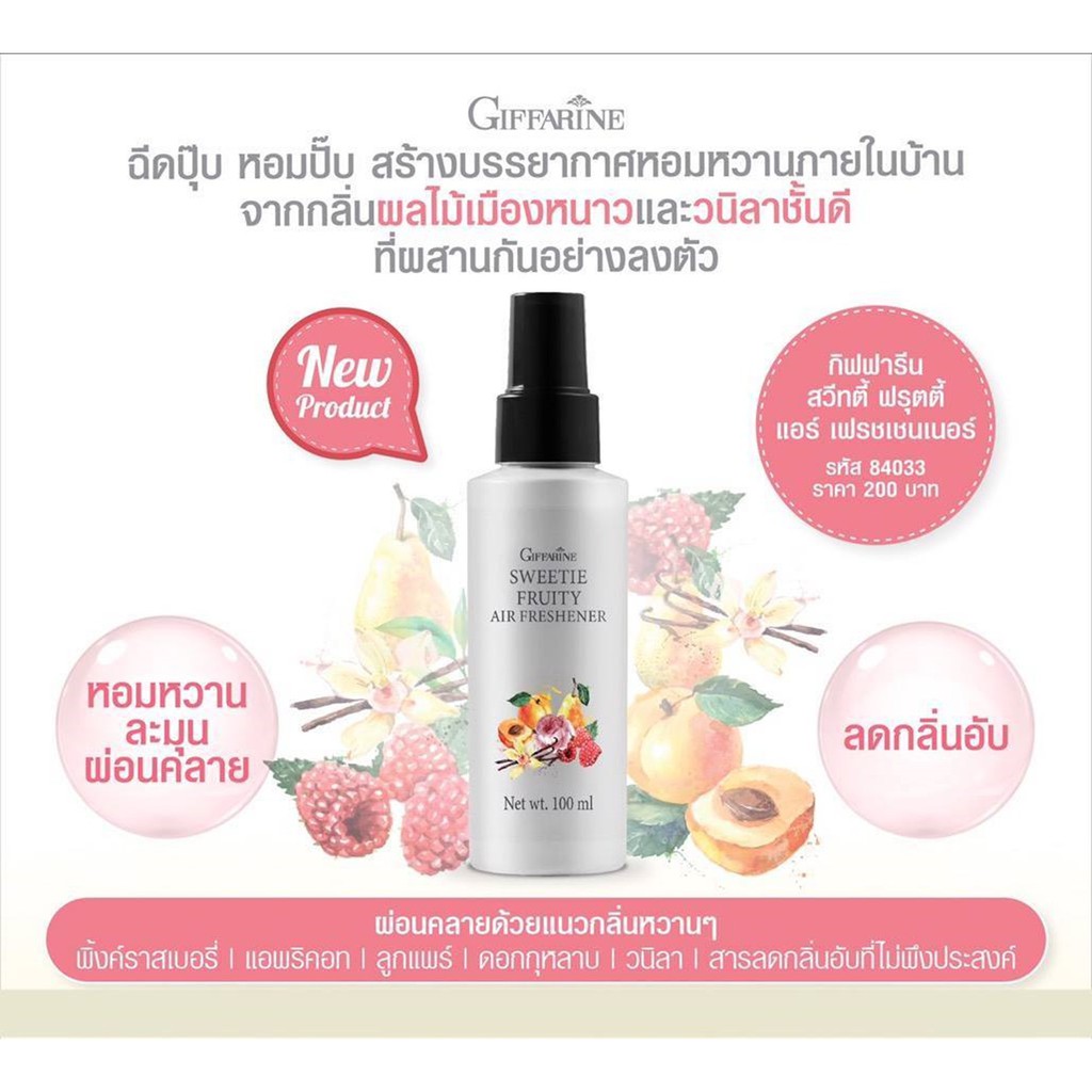 สเปรย์ปรับอากาศ กิฟฟารีน มี 3 กลิ่น กลิ่นสวีทตี้ ฟรุ๊ตตี้ / กลิ่นจัสมิน กรีนทรี / กลิ่นลาเวนเดอร์