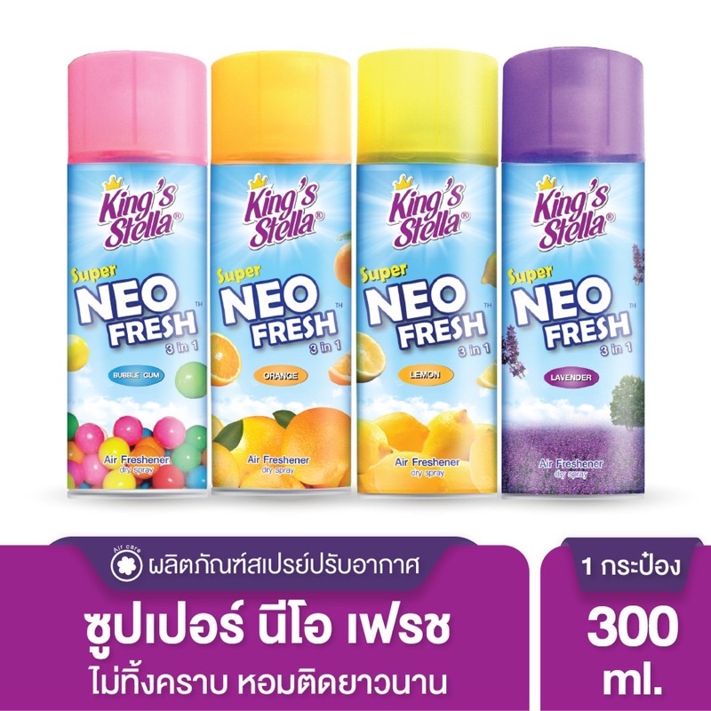 สเปรย์ปรับอากาศ คิงส์สเตลล่า ซุปเปอร์ นีโอ เฟรช 300 มล. สูตรสเปรย์แห้ง ไม่ทิ้งคราบ