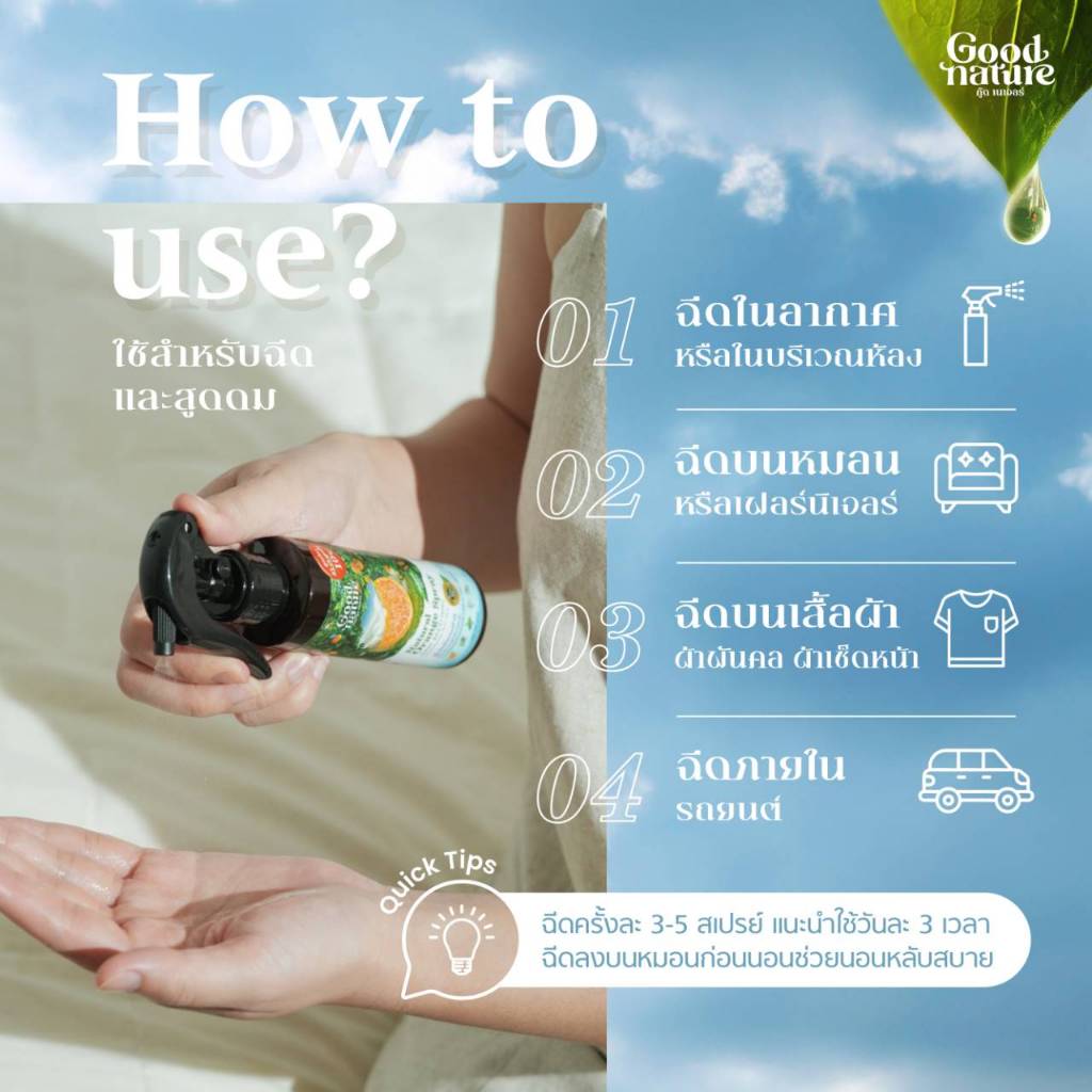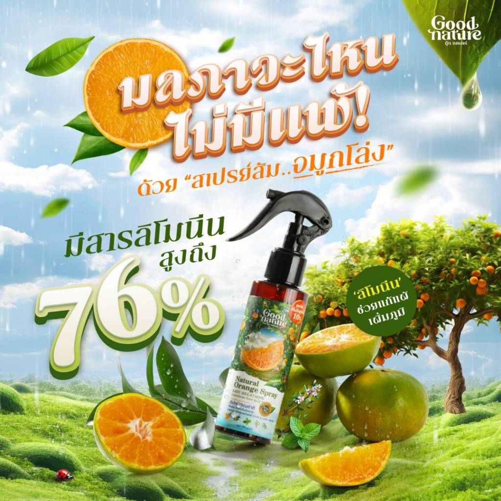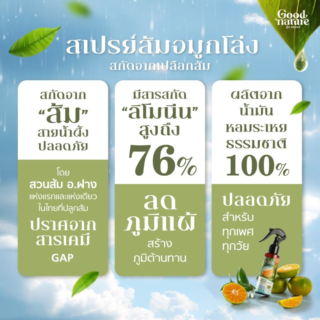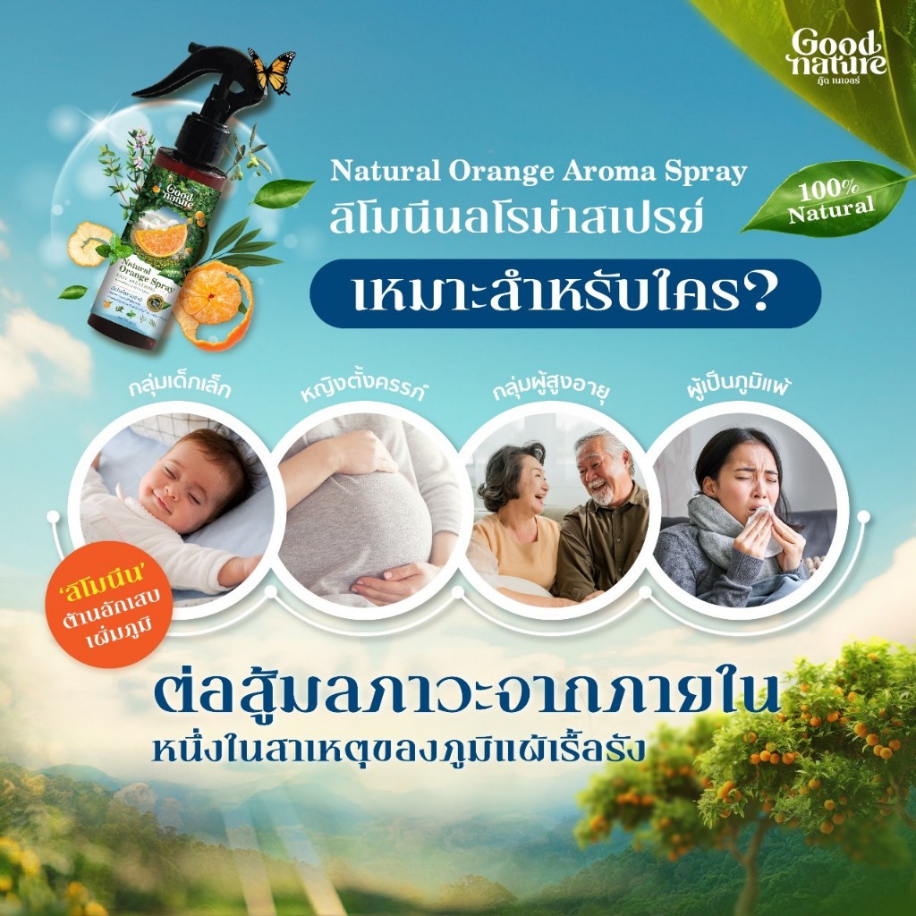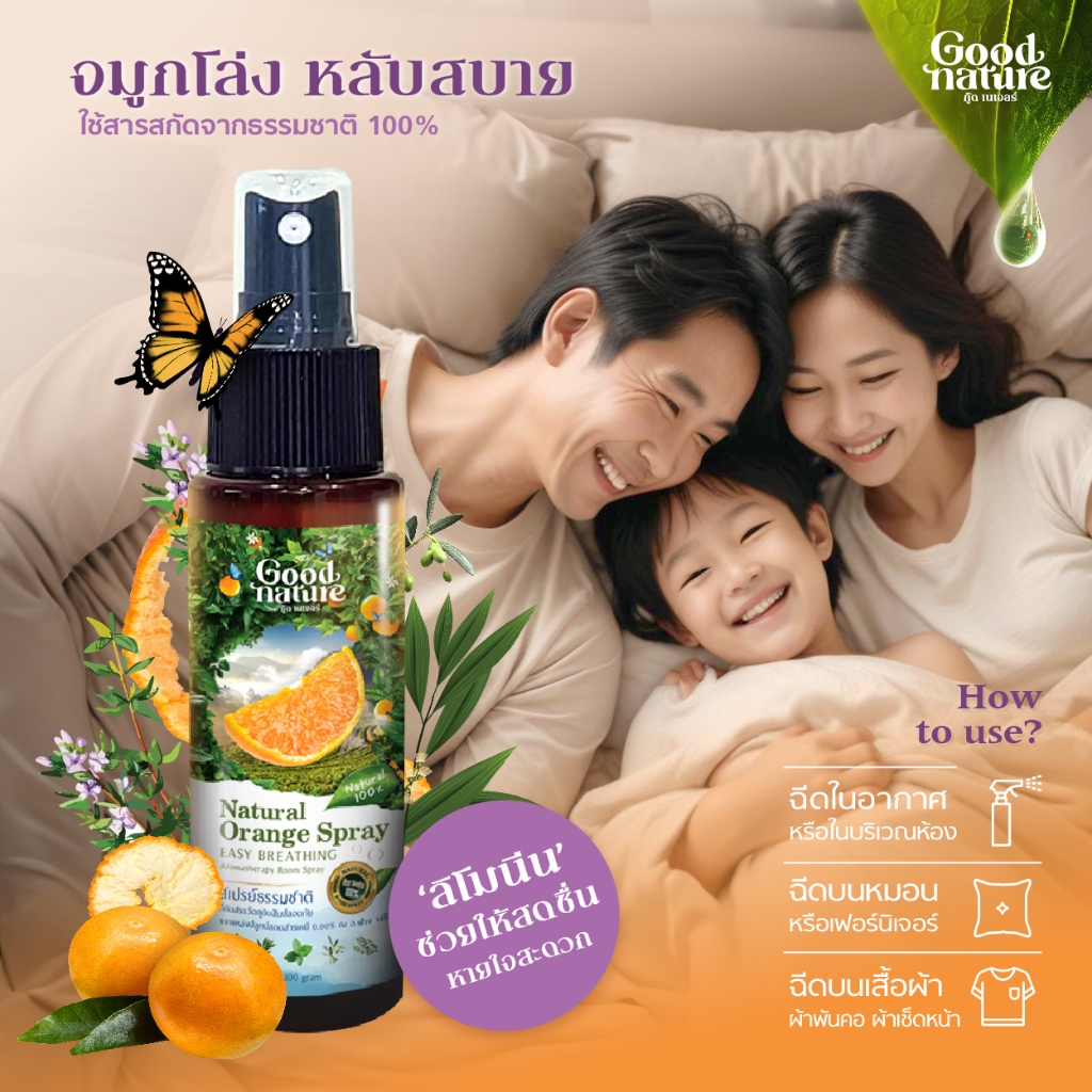 สเปรย์ปรับอากาศ อโรม่าบำบัด กลิ่นส้มธรมชาติ 100% รูมสเปรย์ ลิโมนิน Good Nature สเปรย์ฉีดหมอน ขนาด 50ก. และ 100ก.