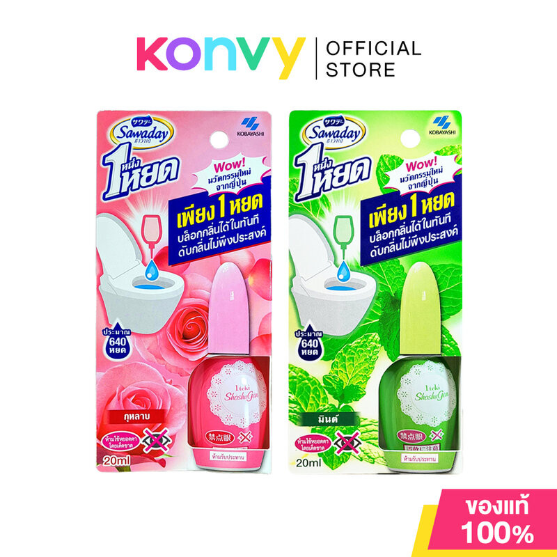Kobayashi Sawaday One Drop โคบายาชิ น้ำหอมดับกลิ่นไม่พึงประสงค์ สำหรับโถสุขภัณฑ์ 20ml (Mint/Rose)