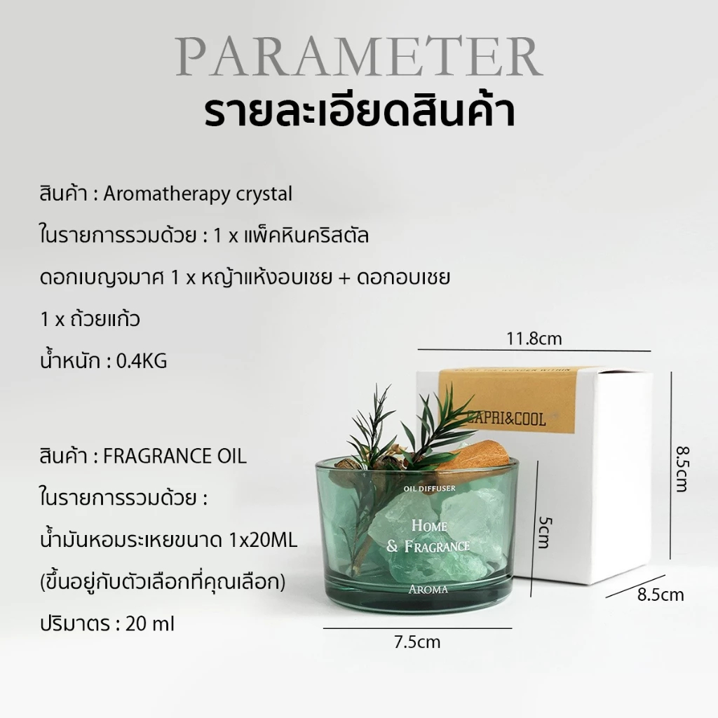HB หินคริสตัลควอตซ์ กระจายน้ำมันหอมระเหย หินหอมธรรมชาติ พร้อมน้ำหอมกลิ่นหรู หอมยาวนาน
