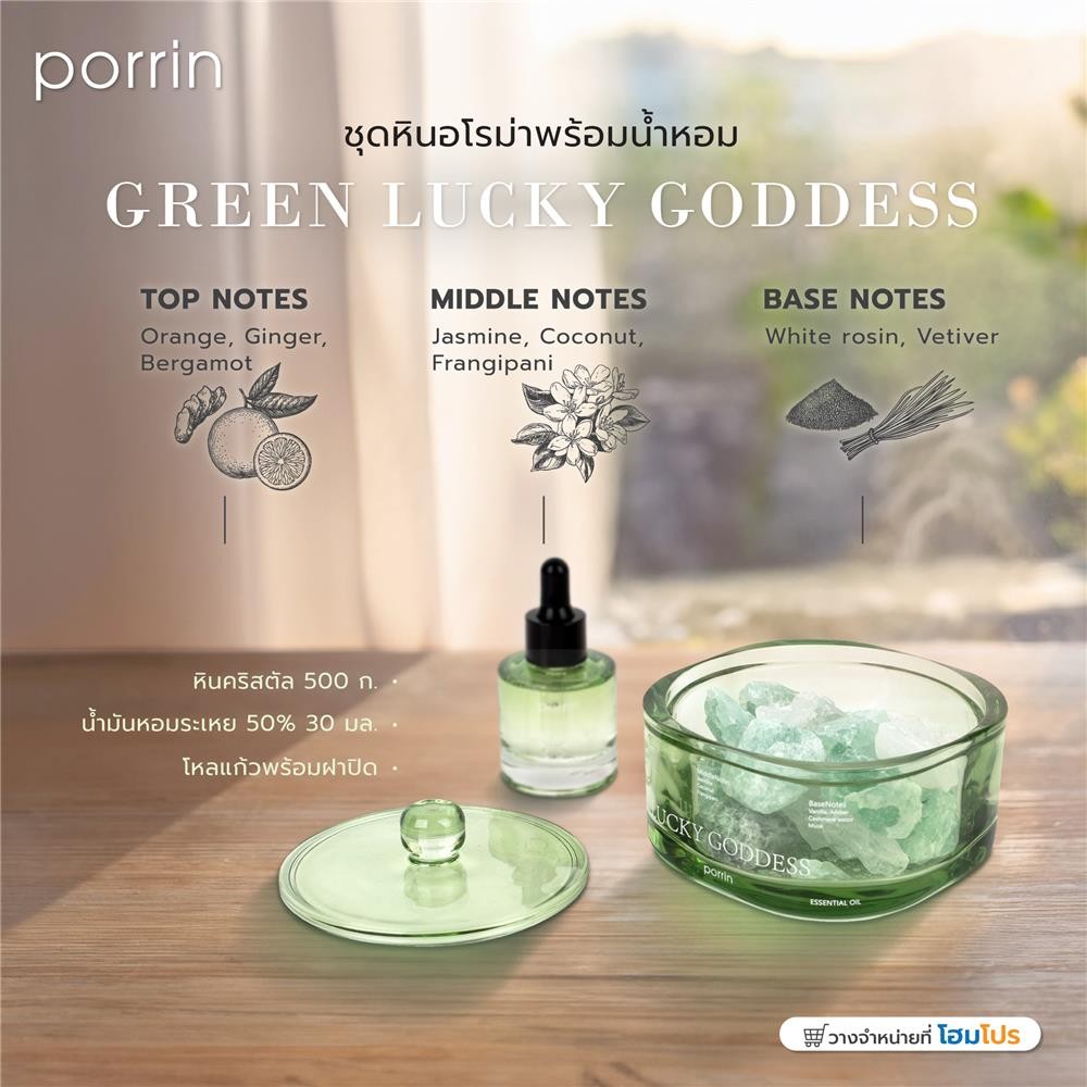 HomePro ชุดหินอโรม่าพร้อมน้ำหอม 500 กรัม + 30 มล. GREEN LUCKY GODDESS แบรนด์ PORRIN