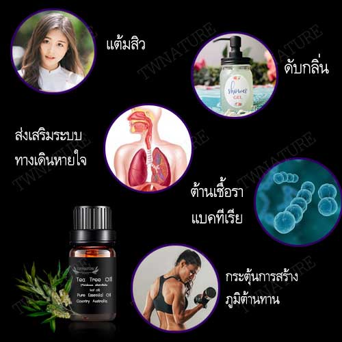 Pure Tea Tree Essential Oil น้ำมันหอมระเหยแท้ ทีทรีออยล์ melaleuca alternifolia leaf oil จาก Australia TWNATURE