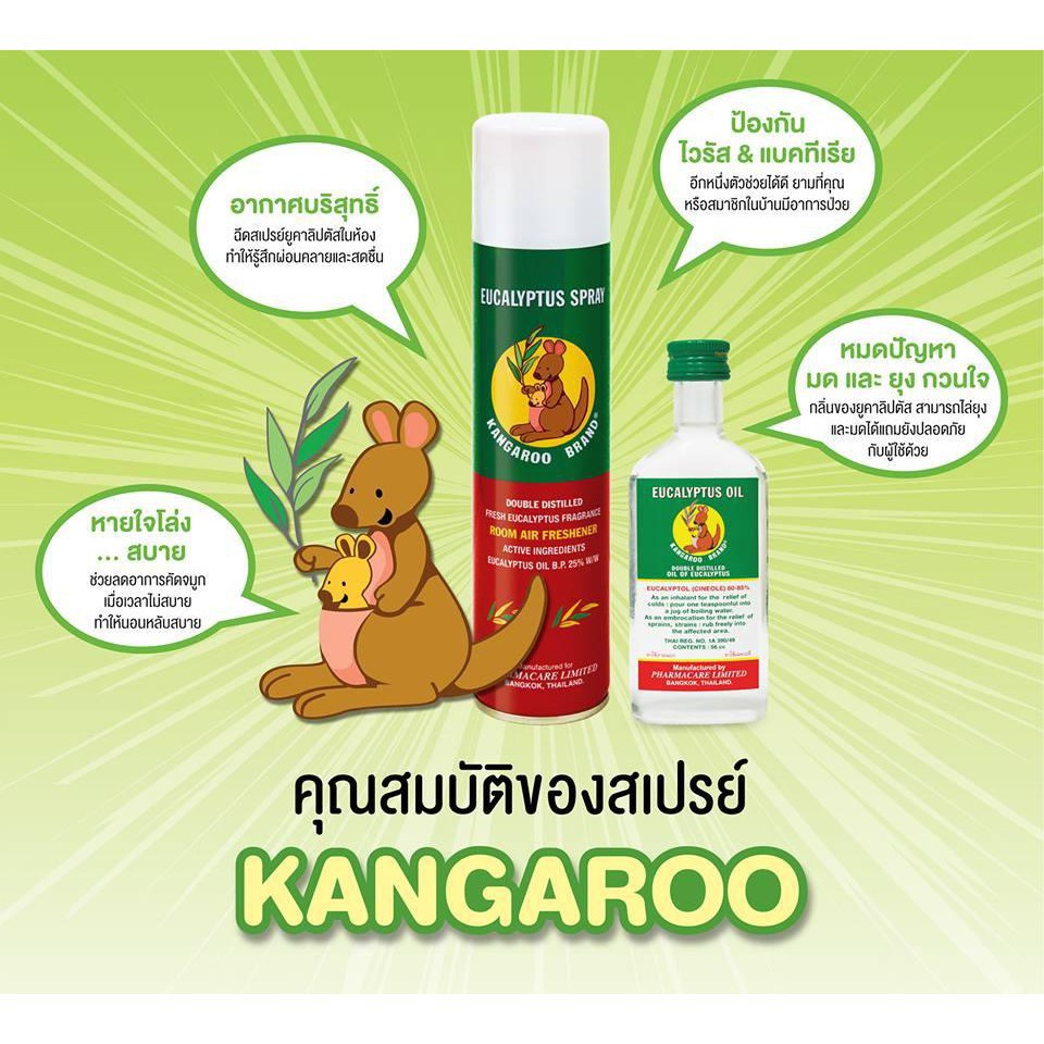 Kangaroo Eucalyptus Spray 300 ML. สเปรย์ น้ำมันยูคาลิปตัส กลิ่นหอม ตราจิงโจ้ 1 กระป๋อง