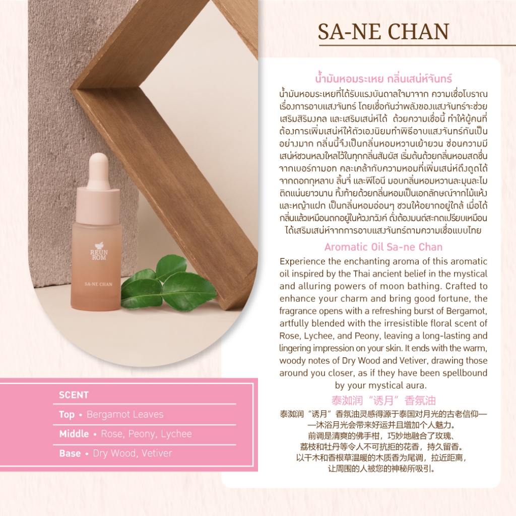Reunrom น้ำมันหอมระเหย 15ml เสน่ห์จันทร์ รื่นรมย์