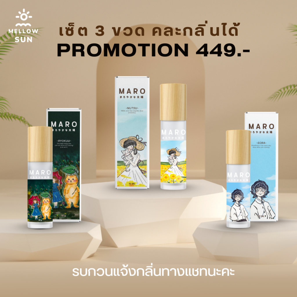 MARO ลูกกลิ้งอโรม่าสูตรเย็น Essential Oil Blends โปรโมชั่นเซ็ต 3 ขวดสุดคุ้ม ? (คละกลิ่นได้)