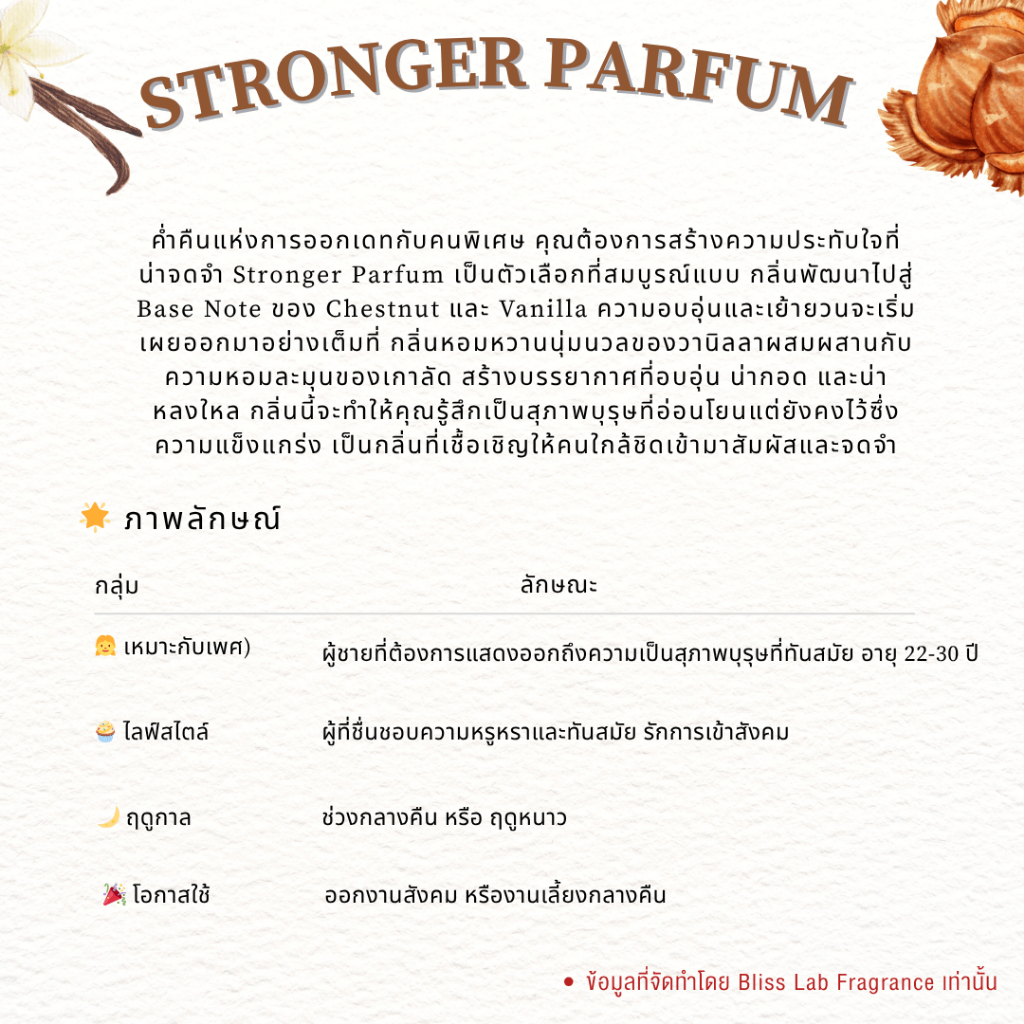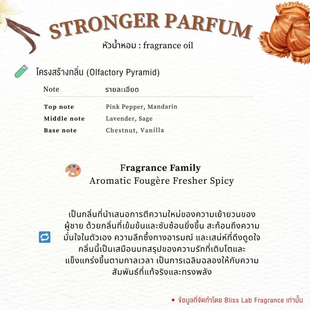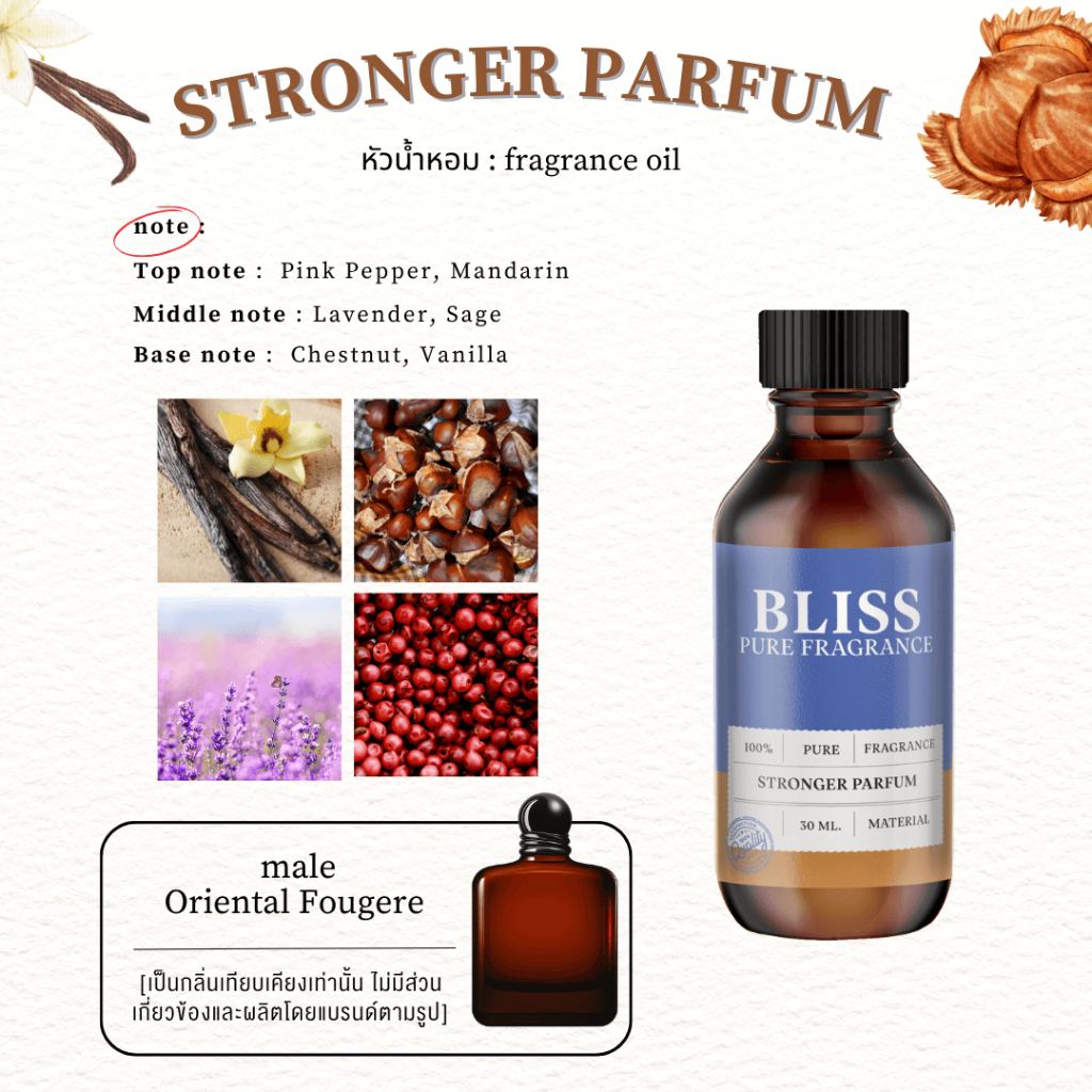 หัวน้ำหอม ?【 มาตรฐาน IFRA 】กลิ่น STRONGER PARFUM (30 -120 ml) (ฺAM BRAND) – BLISS – หัวเชื้อน้ำหอม