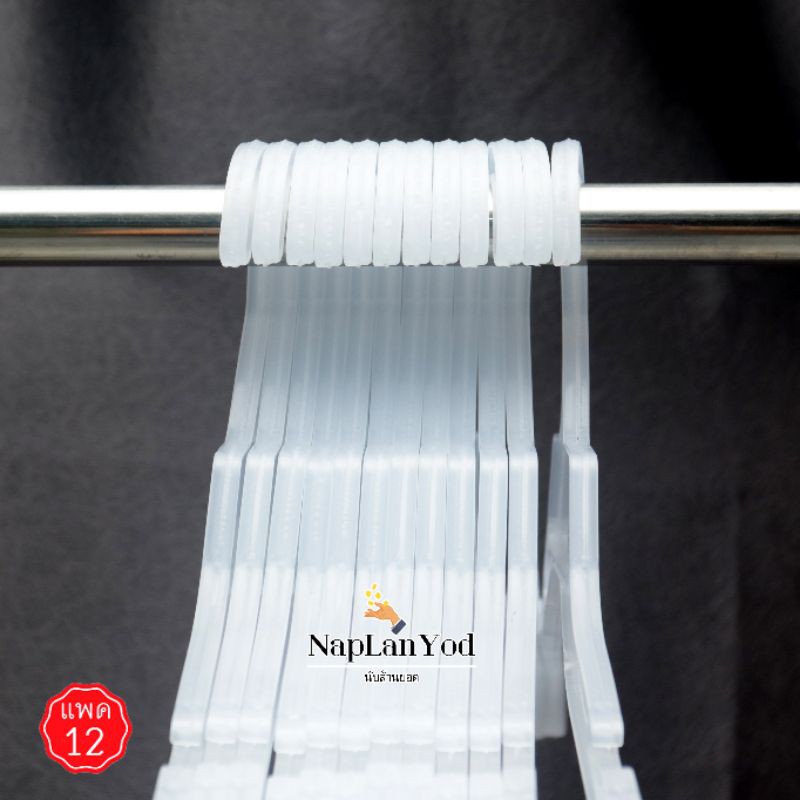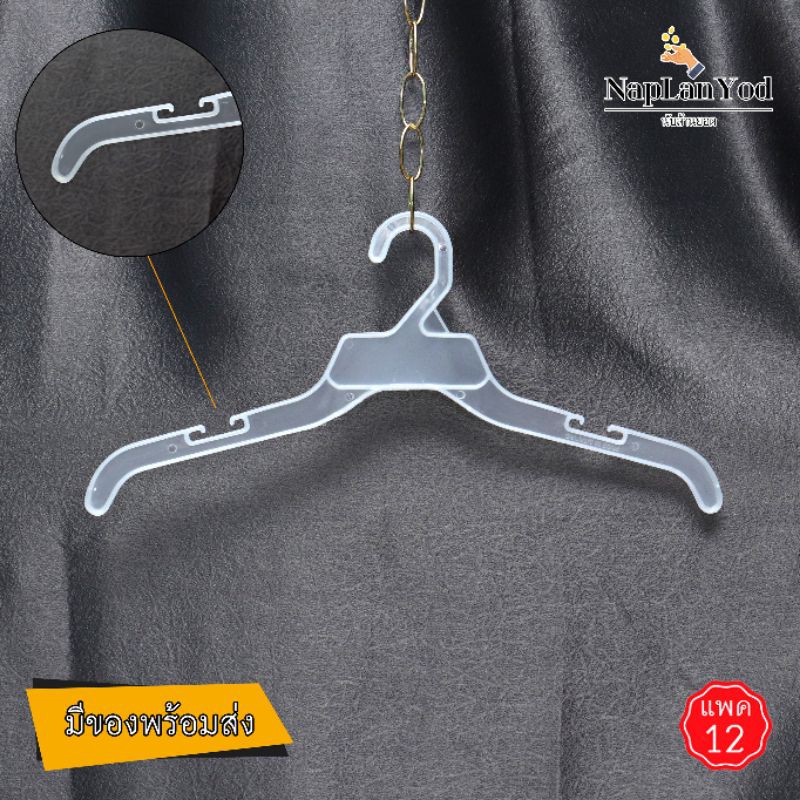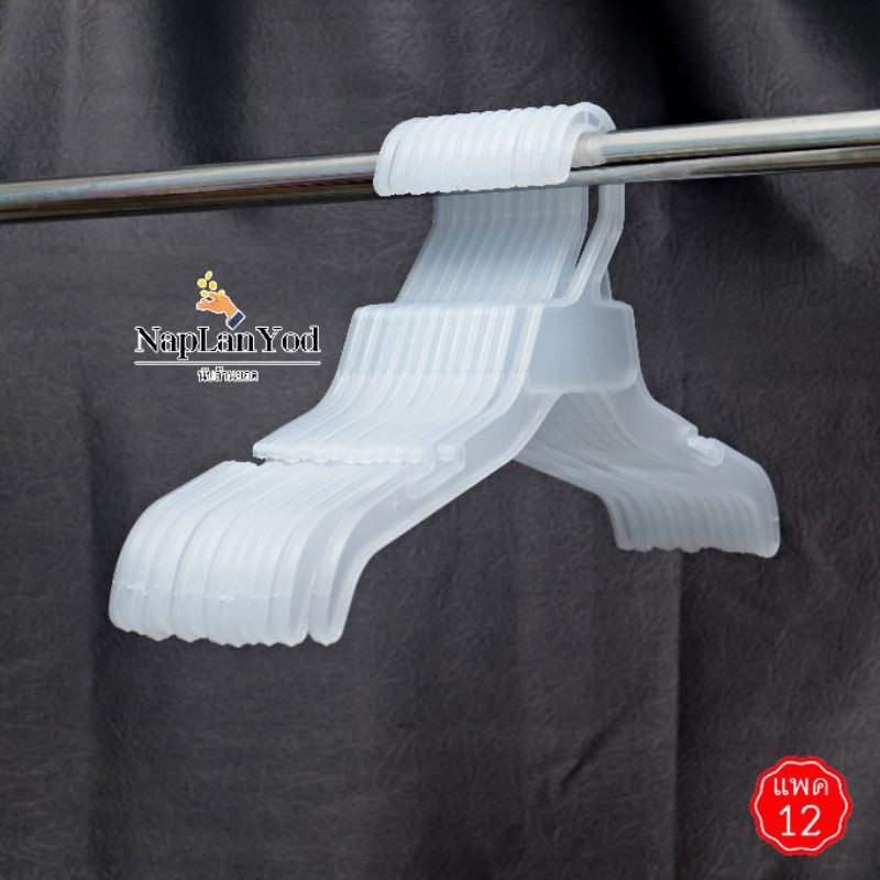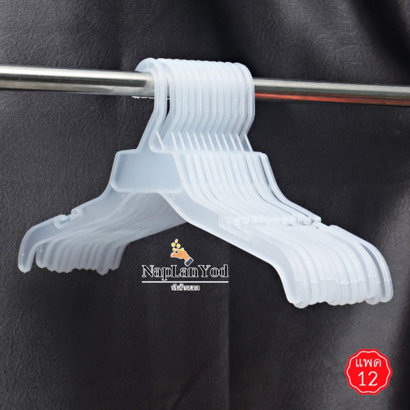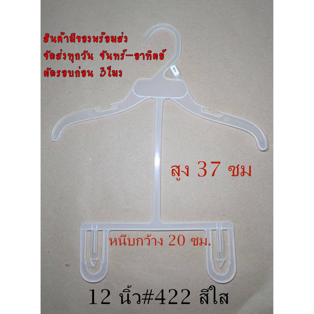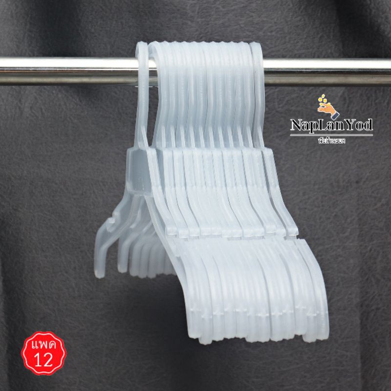 ไม้แขวนเซท 12 นิ้ว #422 ก้าน 7 นิ้ว สีขาวครีม สีใส สำหรับแขวนเสื้อผ้าเด็ก