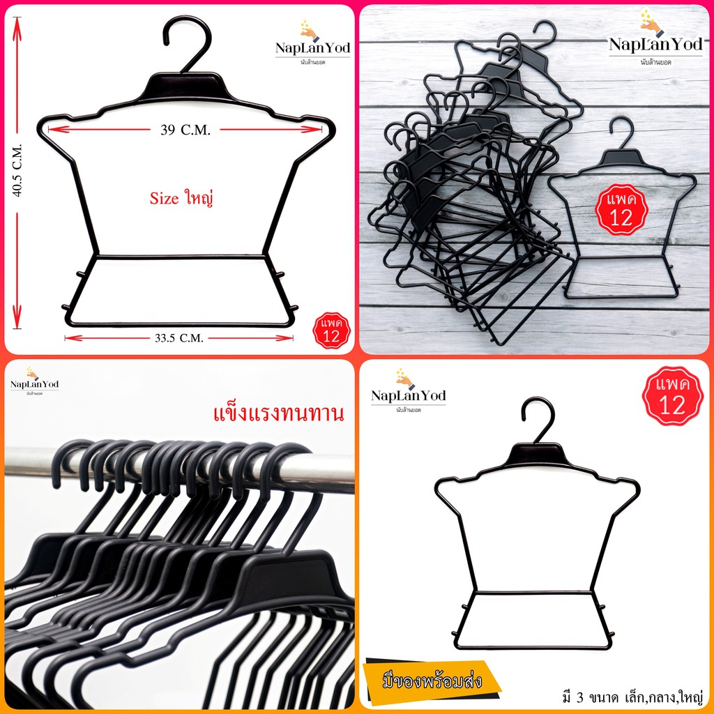ไม้แขวนเสื้อ ลวดเคลือบ ไม้แขวน ถูกสุด แพ็คละ 12 ชิ้น
