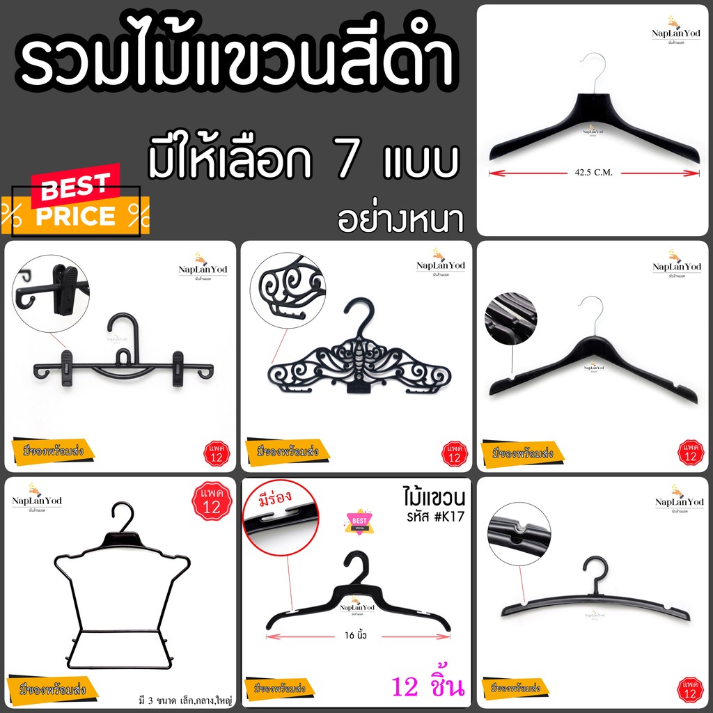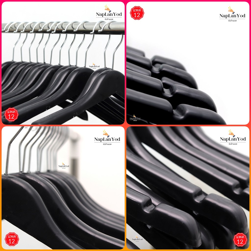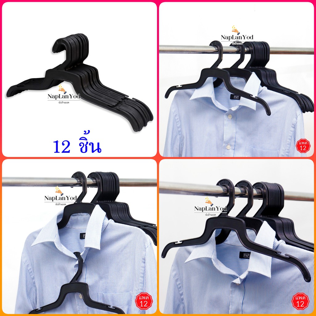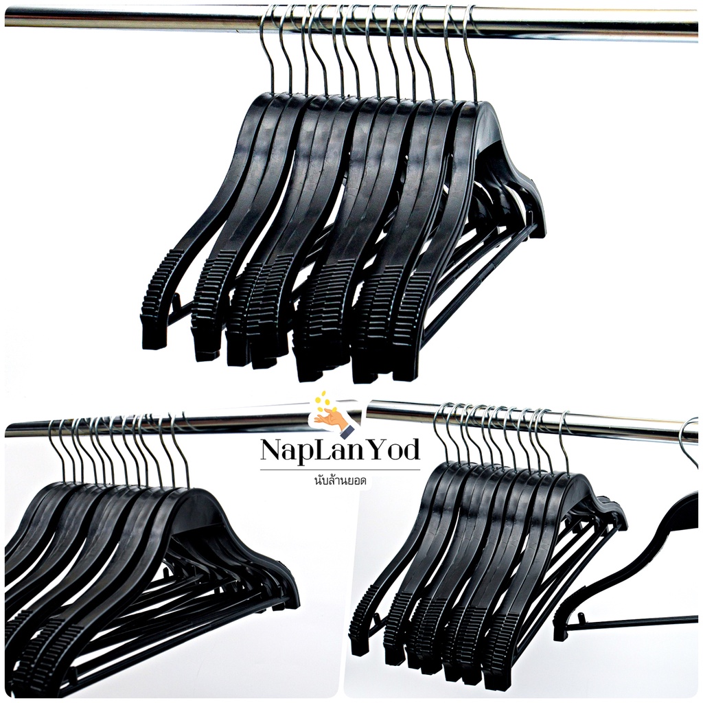 ไม้แขวนเสื้อ อย่างหนา(แพค12ชิ้น) ไม้แขวนพลาสติก สีดำ อย่างหนา คุณภาพดี มี 8 แบบให้เลือก
