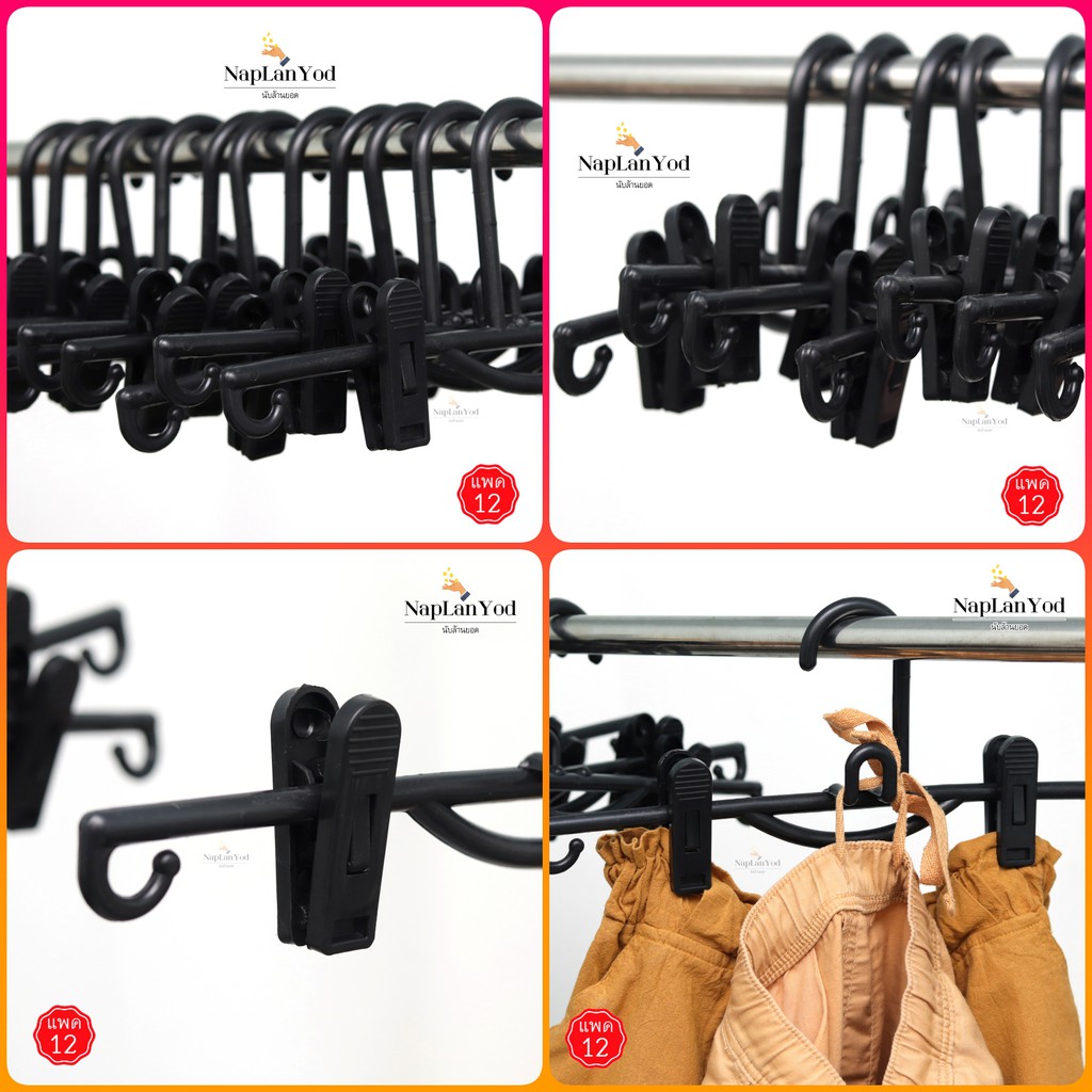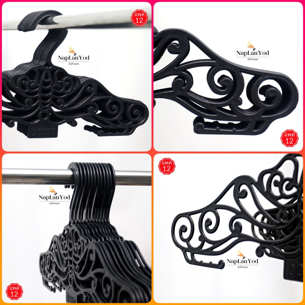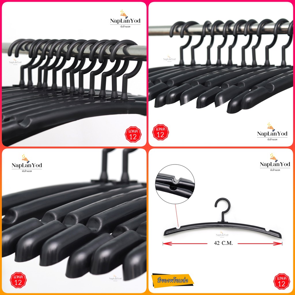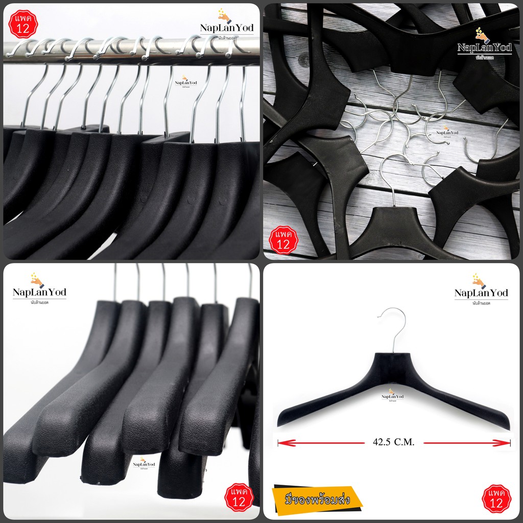 ไม้แขวนเสื้อ อย่างหนา(แพค12ชิ้น) ไม้แขวนพลาสติก สีดำ อย่างหนา คุณภาพดี มี 8 แบบให้เลือก