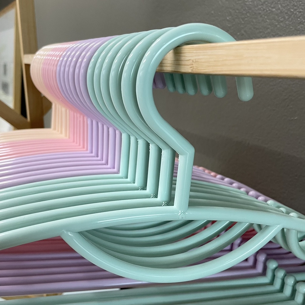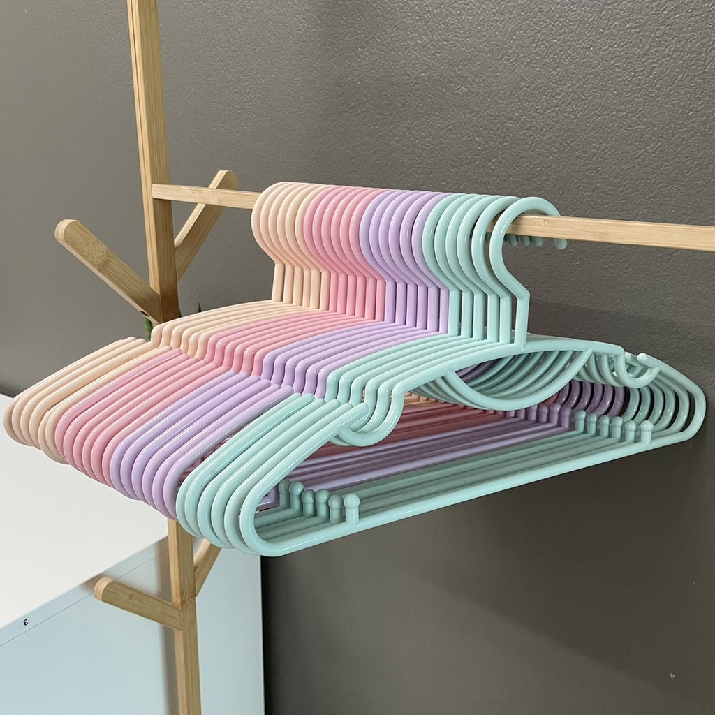 ไม้แขวนเสื้อ (รุ่นกลม 10 ชิ้น) พลาสติกเกรด A หนาอย่างดี สีมินิมอล พาสเทล ทนทาน คุณภาพดีราคาถูก